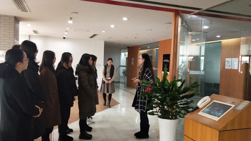随后,同学们进入来到AW(杭州)事业部办公现场参观。在办公现场,事业部张雯部长向大家介绍了AW公司的业务内容和发展前景。她对我校日语专业入职的学生给予了很高的评价,随口谈到了我校日语专业入职的周妍、马雪晴和章林丽等同学。虽然她们在“东忠集团”工作时间不长,但已被多次派往日本国内丰田总部学习和工作,现在的她们已是公司发展不可或缺的中坚力量。