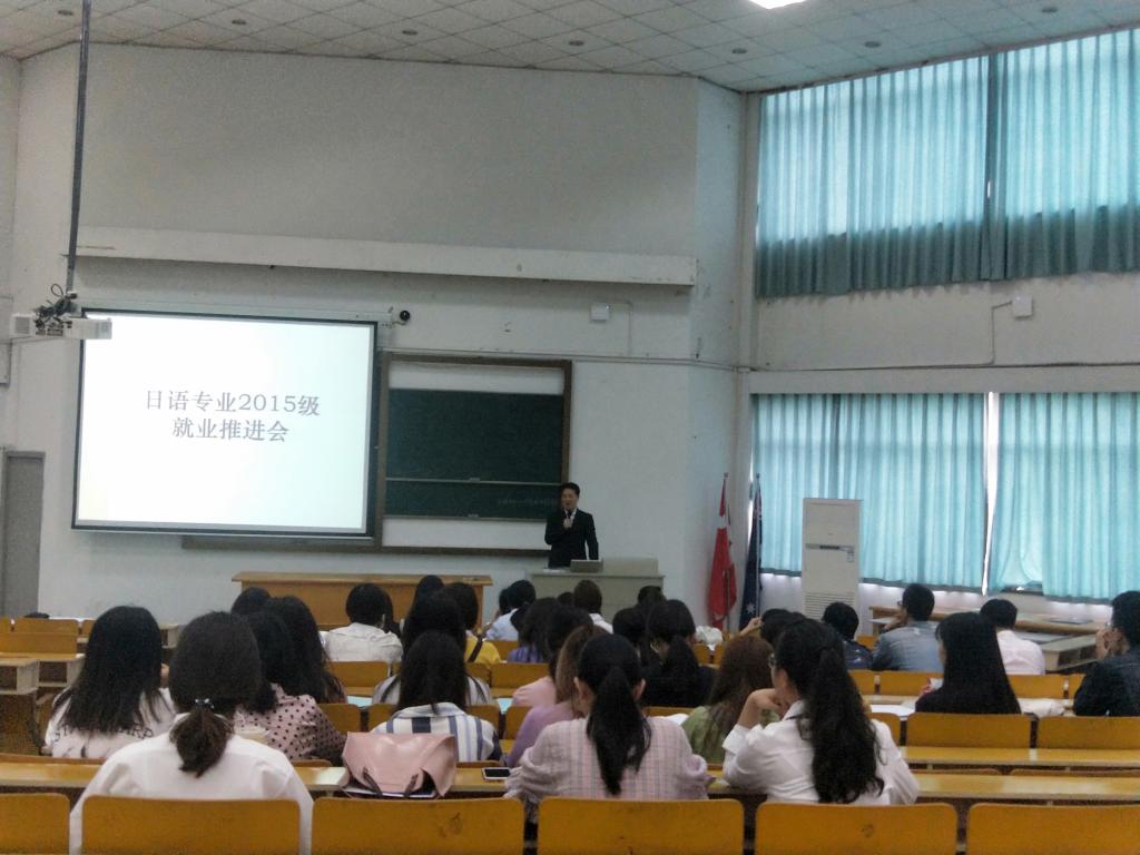 细雨绵绵,又是一年毕业季! 5月26日周日上午,网上赌场 日语专业举行了“2015级就业推进会”和“毕业实习答辩会”。