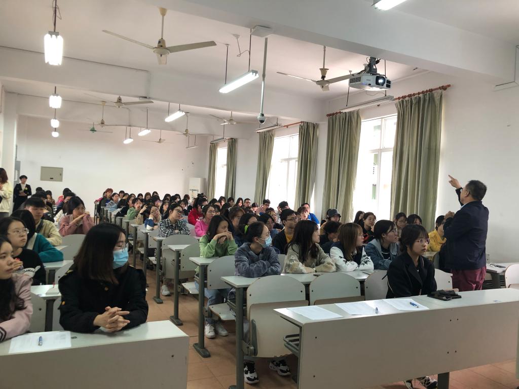 施国良校友在讲座中分享了他求学以及毕业后走上教师岗位的人生经历,鼓励同学们尤其是立志于从事教师行业的同学们在大学期间要把专业课学精、学透,学会思考,做好学业生涯规划,为将来从事教育事业打下坚实的基础。同时,他还介绍了他目前正在负责的一个大型创业项目“寻找单词王”,希望英语专业的同学们利用自身的专业优势,积极参与到该项目中来,在提升个人素质的同时不断丰富专业实践经验,为将来在教育领域就业和创业做好充分的准备。