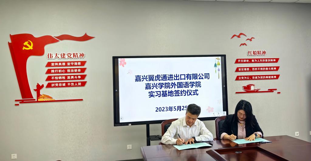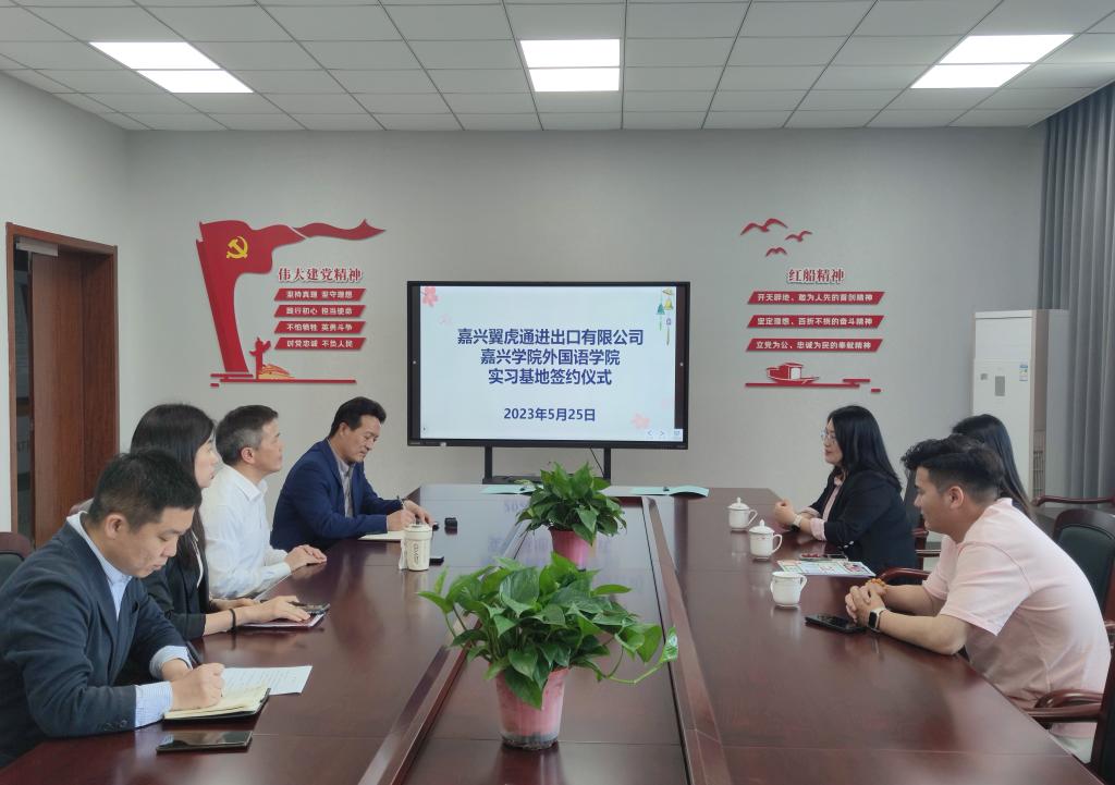 5月25日上午,网上赌场 与嘉兴翼虎通进出口有限公司在兴德楼南楼516会议室就共建实践教学基地等方面进行洽谈,并举行了实习基地合作签字仪式。会议由副院长郭永恩主持,院长唐艳芳、书记周钰和日语系教师董旭阳参加了签约仪式。