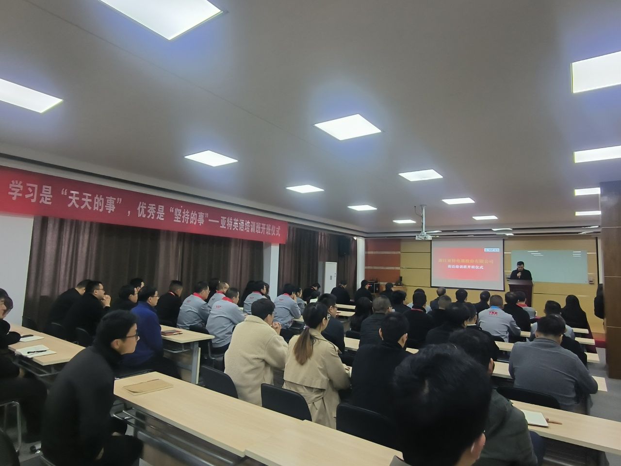 陈勇由衷地感谢网上赌场-网上赌场app下载 对亚特电器股份有限公司员工英语培训工作的大力支持,希望员工们能借此机会学好英语,开阔国际视野,提高跨文化交际能力,为适应新时期全球化需求和公司海外业务快速发展做好准备。