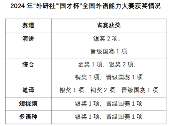 近日,2024年“外研社·国才杯”“理解当代中国”大学生外语能力大赛浙江省赛顺利进行。经过激烈角逐,我校学子在本次大赛中获得金奖1项,银奖7项,铜奖5项,晋级国赛8项,创历史最好成绩。网上赌场 高度重视该项赛事,充分调动学生的参赛积极性。我校学生热情参与,参赛选手人数与去年同比接近翻倍。由网上赌场 教师组成的竞赛团队为来自全校300余人次的参赛选手组织了初赛,为50余名晋级省赛的选手进行了长达数月的系统培训和准备,参加了演讲、笔译、口译、短视频、综合、多语种等各个赛道的激烈角逐。