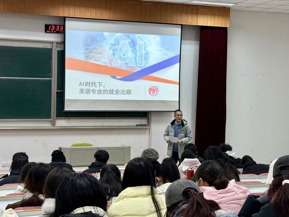 12月12日,网上赌场 英语系邀请上海策马翻译有限公司为英语专业同学开展了一次题为《AI时代下,英语专业的就业出路》的讲座。本次讲座围绕“AI时代下,英语专业学生的专业素养、职业规划和就业出路”展开,同学们积极参与,受益匪浅。