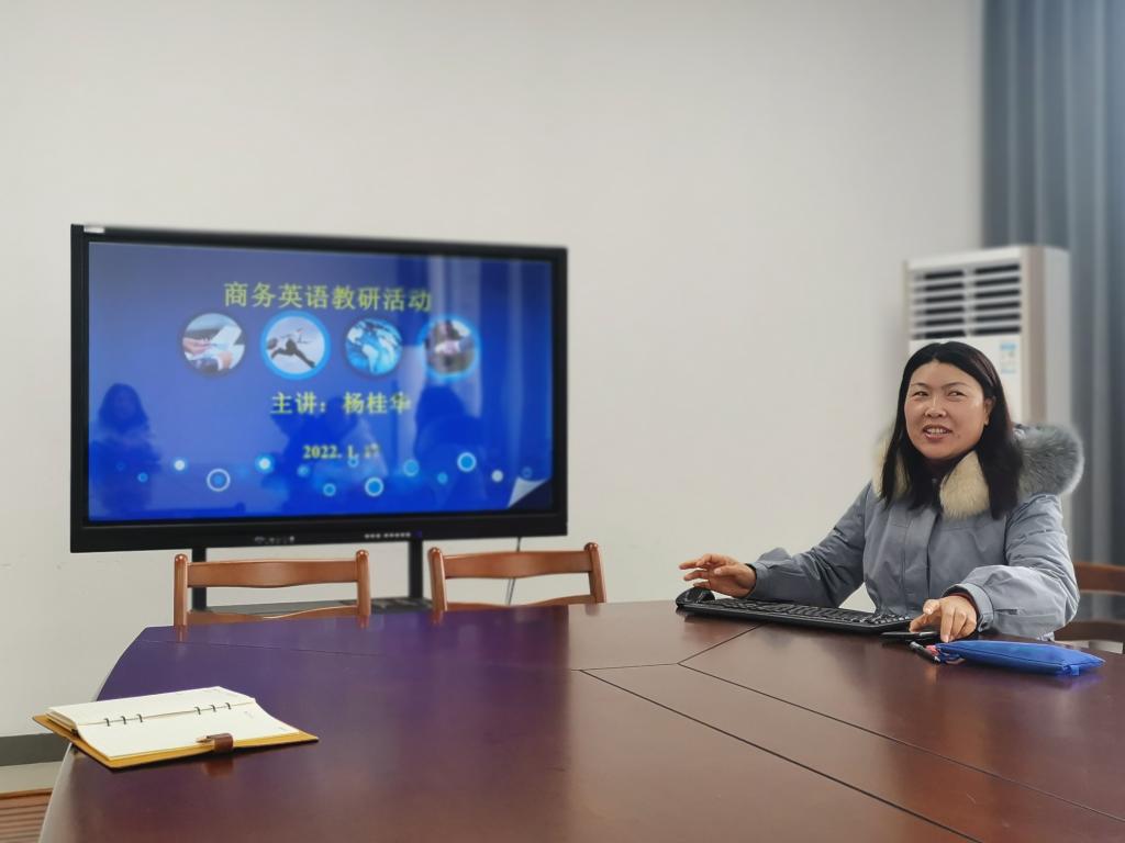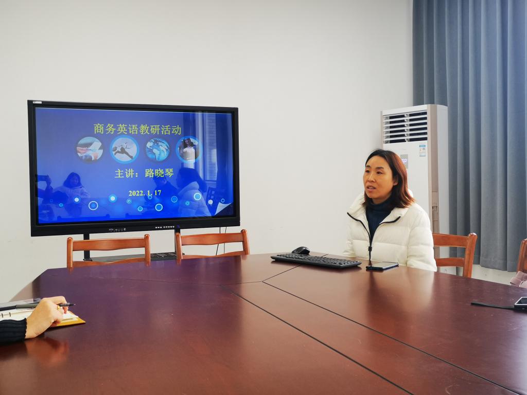 作为本次教研的重点活动,课程组的杨桂华和路晓琴老师分享了她们在“课堂小组活动设计”和“如何指导学生做好单元主题小组汇报”方面的教研计划和具体实施办法。本学期商务英语课采用了线上线下混合教学模式,一方面学生可以在智慧树平台上自学课文内容,另一方面杨桂华老师编写了每单元的课文填空练习,将词汇、商务术语和课文内容相结合,通过填空题的形式检查学生线上课程的学习情况,查缺补漏,强化本单元的重点和难点。路晓琴老师通过一个学生汇报的案例,详细讲述了从选题、讨论、修改到完善的过程中师生是如何合作打磨出一个优秀的作品。与会老师对她们分享的内容进行了热烈的讨论和补充。周红教授还鼓励课程组教师们积极参与申报商务英语方面的课题和学生竞赛项目,提早准备各类评比等。最后,会议还讨论了本学期实用商务英语智慧树线上课程运行中遇到的问题和解决方案,并对下学期的工作进行了部署。