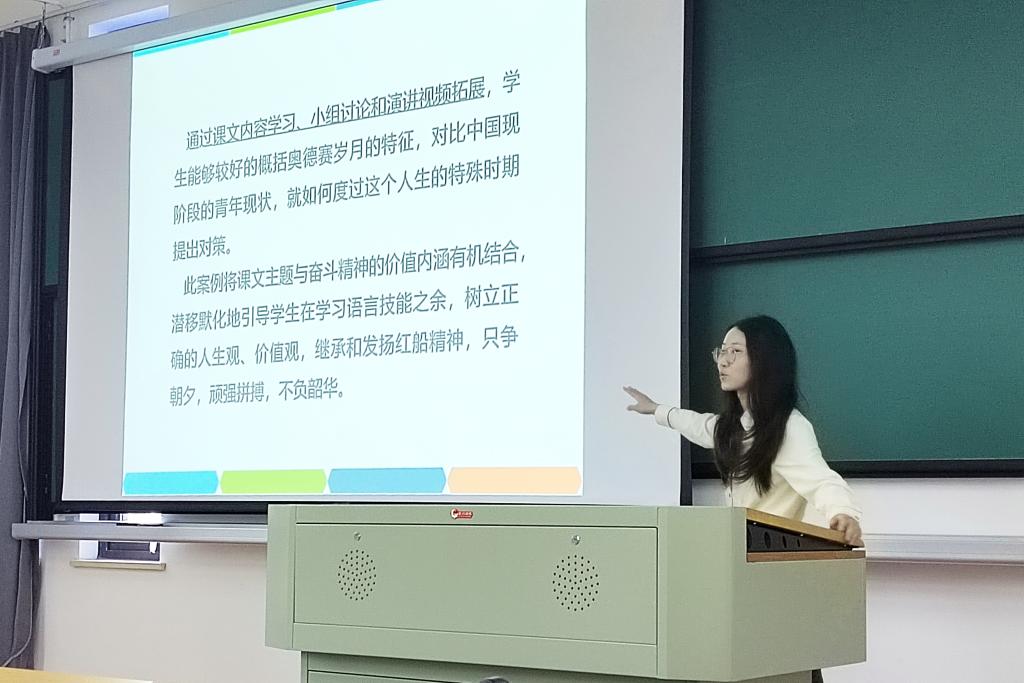 “我将A Journey Through the Odyssey Years这篇课文的主题与奋斗精神相结合, 旨在引导青年学生在学习语言技能之余,继承和发扬红船精神,只争朝夕、顽强拼搏、不负韶华”“我认为课程思政教学的最高境界是‘润物细无声’,教师在学生心目中悄悄播撒真、善、美的种子,精心浇灌、静待花开”……5月26日下午,为推进课程思政的有效落实,丰富课堂教学研讨形式,推动课程思政理念入脑入心,全面提升外语课程思政教学质量,网上赌场 分系部召开了精彩纷呈的课程思政集体备课会。