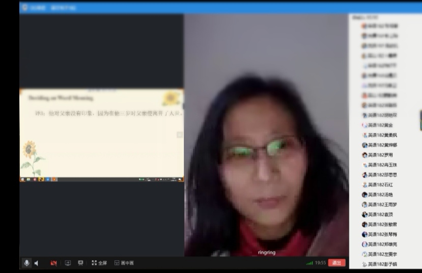 无论是网络教学,还是课堂教学,保证教学质量是第一要务。由于疫情的到来,师生不得不从传统的课堂全部转移到网络课堂,对于课程质量的管控成了重中之重。教师们在教研会上特别提到各自的课程监督方法,花式签到、随机提问、作业抽查、网络课堂弹幕讨论等等,可谓大仙过海各显神通。王淞华老师还分享了自己的“独门秘籍”,要求学生课后晒笔记,以此来充分督促学生上课期间要认真听讲、做好笔记。陈文玉和边娜等老师一致认为,网络教学的作业批改量较之往常更大了,翻了几倍。不难看出,教师们在和学生不见面的情况下正是将那份教导、鞭策和浓浓的爱生之情融为了一份份高要求、一封封作业反馈邮件。与此同时,老师们还提出在网络教学之初就从思想上鼓励我们的学生要坚定不移地加强自学、自律的能力。参与研讨的老师也频频提到在网络课堂的互动中学生们的良好表现,这也充分说明了新时代大学生的学习热情、学习主动性和积极性。