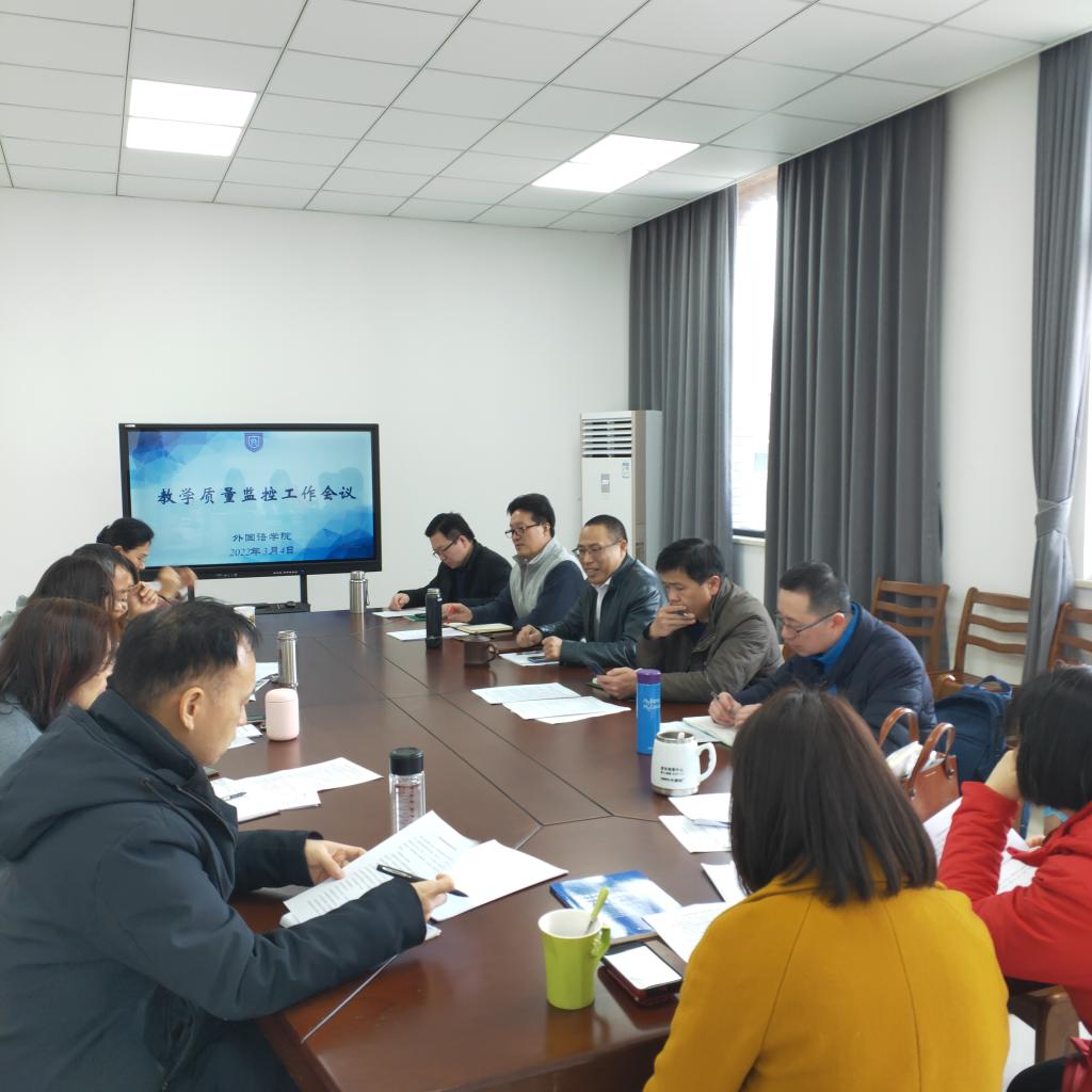 为进一步提高学院教学质量,加强网上赌场 教学质量监控,增强教师教书育人意识,网上赌场 于2022年3月4日下午在兴德楼516室召开本学期教学质量监控工作会议。网上赌场 院长唐艳芳、副院长喻锋平、副院长郭永恩、英语系专业负责人陶丹玉教授、督导组成员周红教授及督导组其他成员、各系部正副主任参加了会议。会议由副院长喻锋平主持。