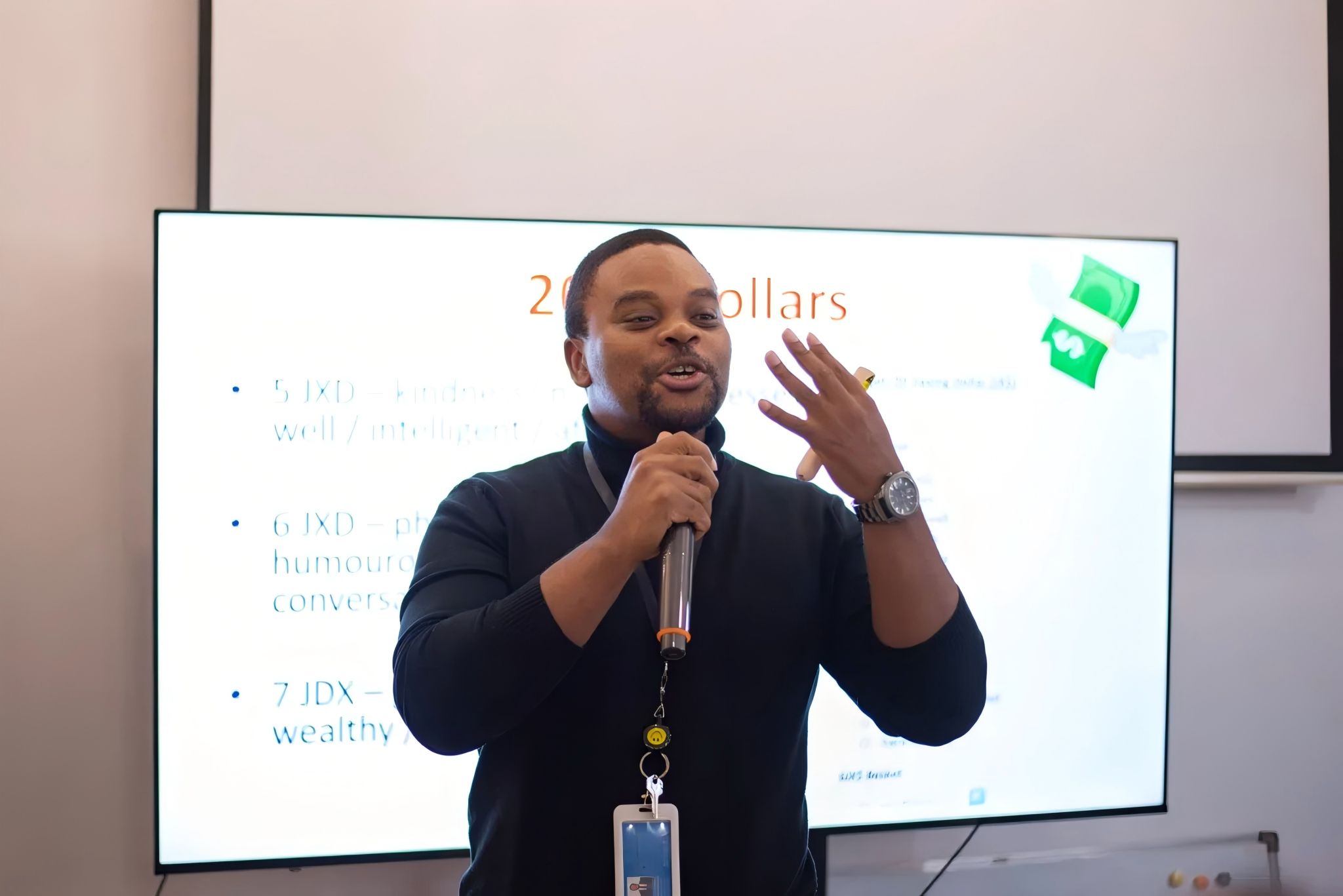 外教Kay则向同学们发放了一张纸片与20枚“特殊货币”,纸片上写有各种理想伴侣的品质,如“善良”“智慧”“幽默”“富裕”等,它们各有价格,同学们需要用特殊货币去购买,由此引发激烈辩论。随后,屏幕上轮番出现运动型女孩、肌肉男、哥特风女孩、光头大胡子大叔等多元形象,Kay笑问“谁是你的理想型”,现场笑声不断。最后,他以“如果暗恋(crush)你会怎么做?”“该让对方知道你的心意吗?”“单身最大的好处是什么?”等灵魂拷问收尾,推动大家深入思考亲密关系的多样形态。
