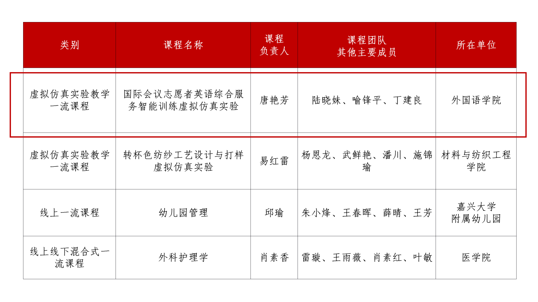 近日,教育部公布第三批国家级一流本科课程认定结果,嘉兴大学4门课程入选,涵盖多个课程类型,充分体现了我校在课程建设和教学改革方面的扎实进展与显著成效。其中网上赌场 唐艳芳、陆晓妹、喻锋平、丁建良团队的《国际会议志愿者英语综合服务智能训练虚拟仿真实验》课程成功获批国家级一流本科课程(社会实践一流课程)!这是我院本科课程建设取得的又一重大突破!