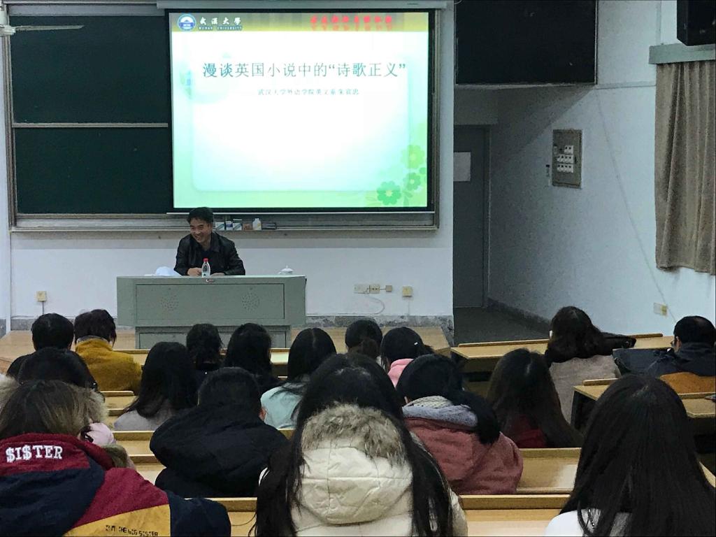 11月30日下午,武汉大学外语学院朱宾忠教授应邀为我院师生做了题为“‘诗歌正义’在英国小说中的实现”讲座。