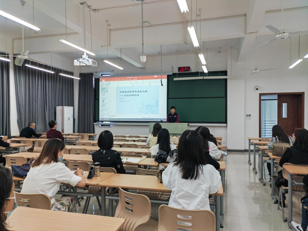 5月5日下午,网上赌场 院长唐艳芳给大外部老师们做了题为《外语教师的学术成长之路》的专题讲座。本次讲座由大外部主任丁建良主持,全体大外部老师参加学习。