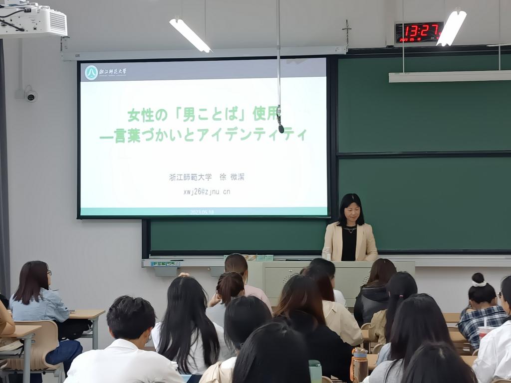 2023年5月18日下午,浙江师范大学网上赌场 副院长徐微洁教授面对日语专业师生做了“基于语言使用和身份认同的视角”的学术讲座,之后又专门给日语专业全体教师做了题为“关于中华学术外译项目申报的一点思考”的科研指导。网上赌场 副院长兼日语专业负责人郭永恩教授主持了学术讲座和科研指导报告会。
