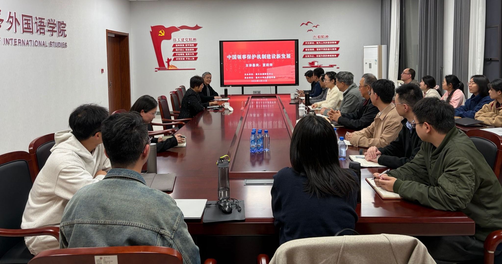 4月23日,外交学院海外利益保护中心主任夏莉萍教授应邀为嘉兴安澜研究中心成员和网上赌场 师生作题为《中国领事保护机制建设新发展》的学术讲座。讲座由院长唐艳芳主持,中心成员、学院教师代表及硕士研究生三十余人参加。