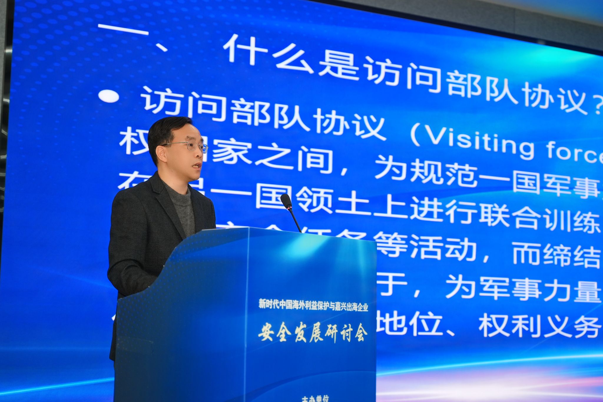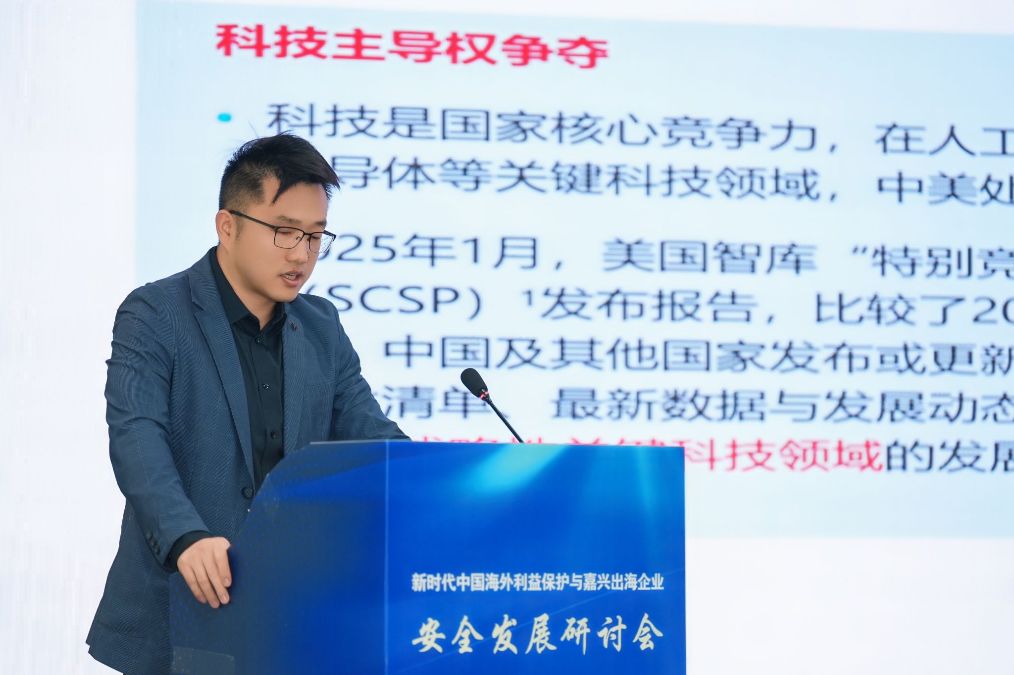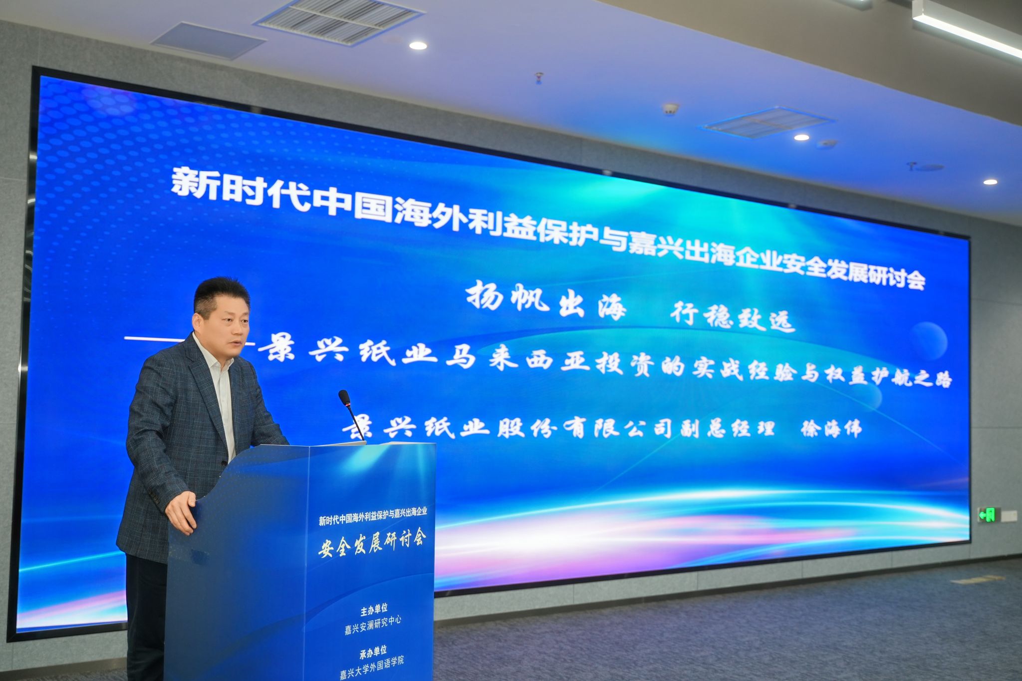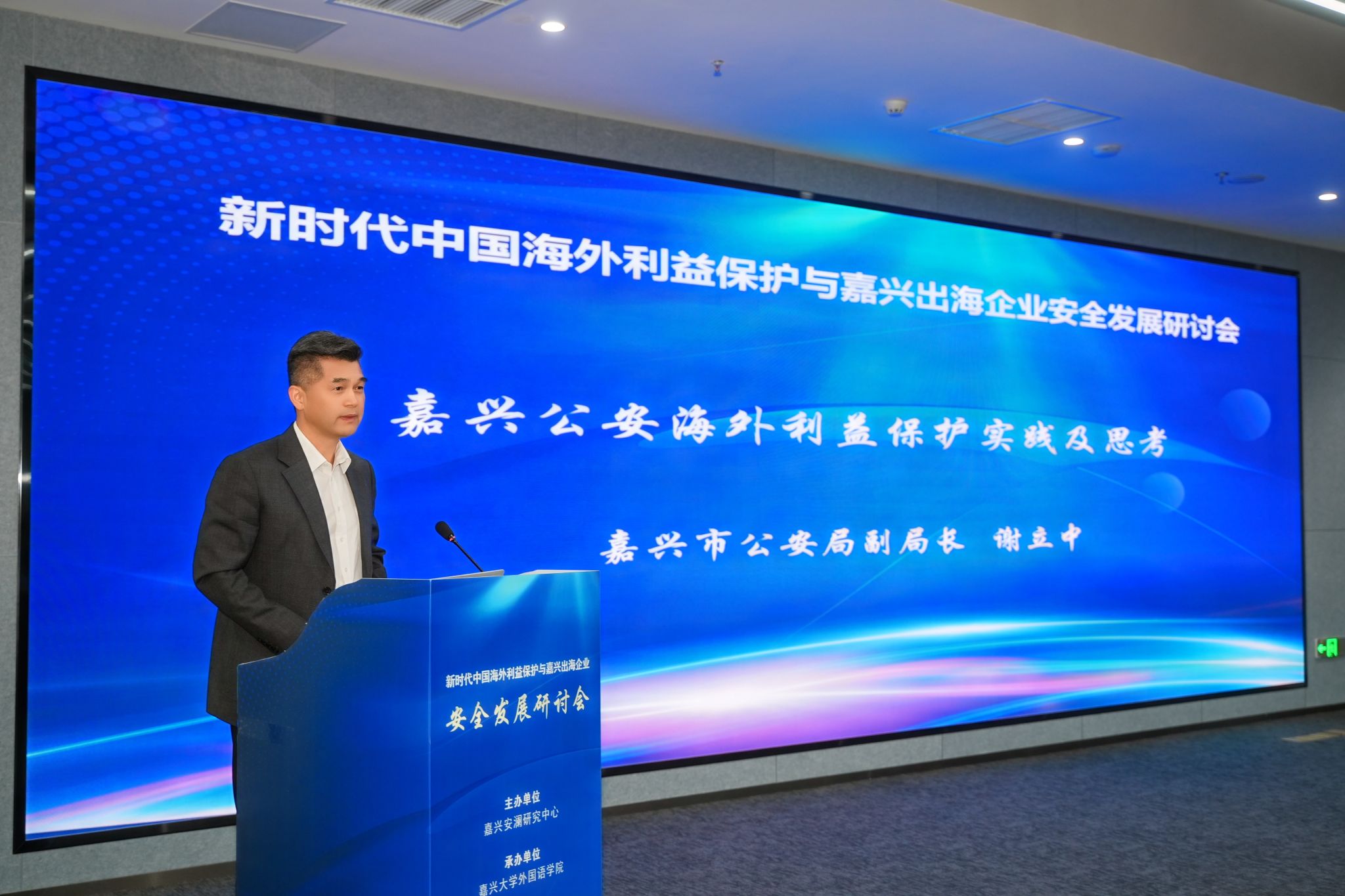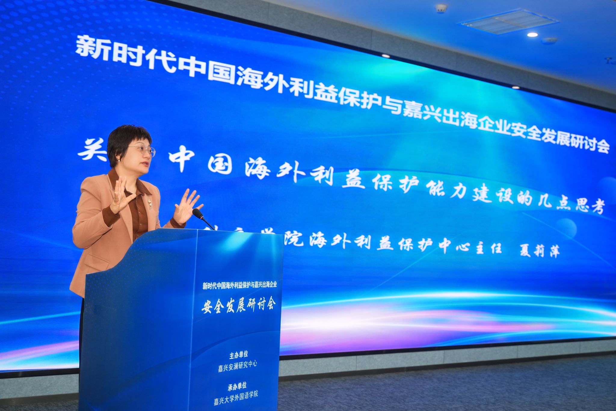 於建明在致辞中指出,海外利益保护事关发展安全,企业安全发展事关嘉兴未来。当前国际局势复杂多变,企业“出海”安全挑战日益增多,海外利益保护已成为必须答好的“必修课”。他希望与会嘉宾以本次研讨会为契机,围绕“海外利益保护”聚智聚力,为嘉兴企业出海行稳致远保驾护航,为国家海外利益保护战略落地落实贡献力量。於建明表示,嘉兴大学将持续大力推动区域国别学交叉学科建设,依托多学科优势建强嘉兴安澜研究中心智库平台,聚焦政策咨询与投资风险预警,打造“智库+教育”双平台,构建“咨政——人才——传播”三位一体战略支撑体系,以学术成果搭建国际对话桥梁、提升中国全球治理话语权,高质量服务区域高水平对外开放,为嘉兴打造长三角全面开放新高地贡献力量。