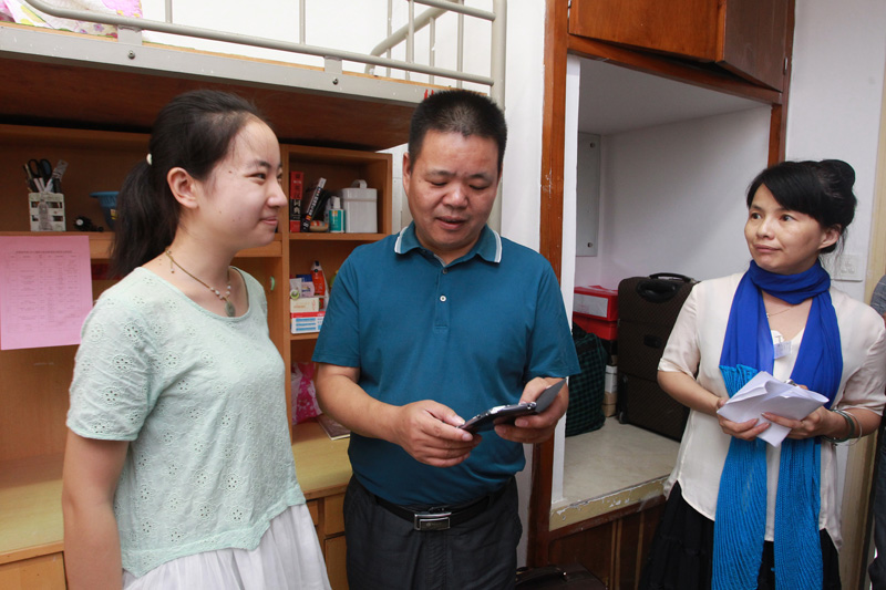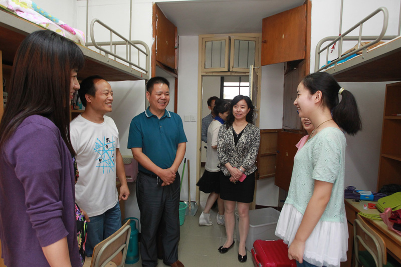 9月18日是嘉兴学院全体新生报到的日子,迎新工作繁忙而有序地开展。9月18日上午,校党委副书记史永安、学生处长郝文静在网上赌场 党政领导的陪同下走访了网上赌场 2014级新生寝室。走访过程中,史书记与新生和家长们亲切交谈,询问同学们到校后的感受,鼓励新生尽快适应大学生活,认真做好大学四年生涯规划,学会学习、学会生活。新生徐青的父母说:“嘉兴学院的领导和老师让我们觉得很温暖,我们家长觉得选对学校了”。史书记表示请家长放心,学校和学院将尽最大努力为同学们提供良好学习环境,家校共同努力,助推学生成长成才。