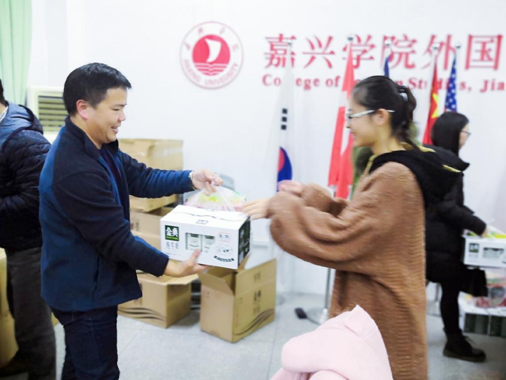 会后,网上赌场党政 领导为考研同学发放了慰问品,为同学们送去冬日暖意。