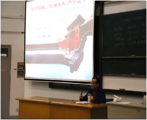 为进一步指导新生全面系统地了解宗教知识,树立正确的宗教观念,网上赌场 于2020年11月25日晚在外语楼310开展了新生宗教政策宣讲讲座。本次讲座邀请了文法学院副院长步珏良副教授主讲,网上赌场 20级全体新生参加了讲座。