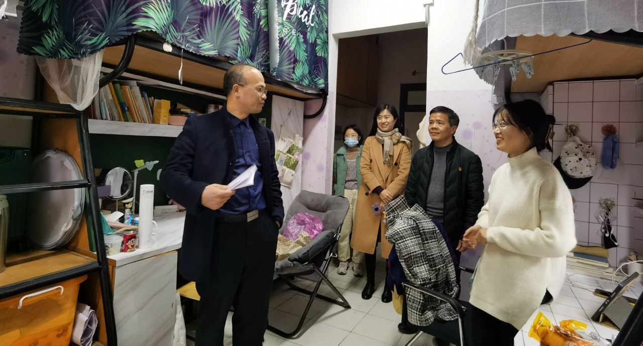 2月28日下午,副校长杨培强在网上赌场 院长唐艳芳、党委书记周钰的陪同下走访我院学生寝室,并与学生亲切交流。在走访慰问中,杨校长详细了解学生寒假生活、返校情况、上学期的学习成绩,并询问新学期的课程安排、学习计划以及未来打算。他殷切地叮嘱同学们应该继续努力学习,不断提高自己的专业知识与素养。走访中,杨校长和联系寝室公寓六B138的各位同学进行畅谈,询问同学们考研的准备情况,鼓励大家在继续努力的同时也要注意锻炼身体,劳逸结合。同学们对校领导的关心深表感激,并对未来充满希冀。