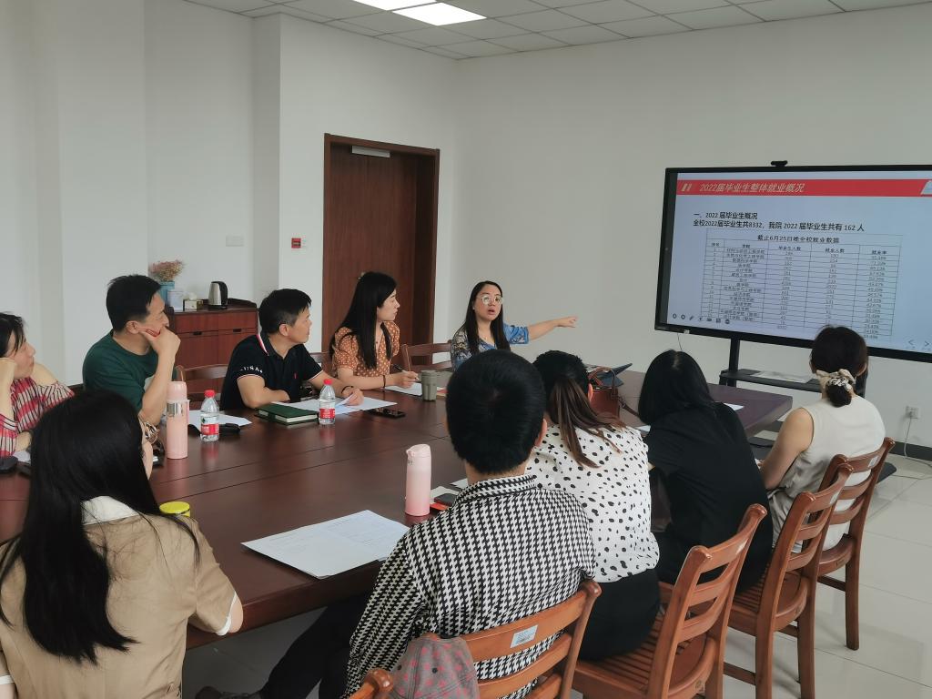 6月26日上午,网上赌场 召开2022届毕业生就业工作专班会议。网上赌场党政 班子、系主任、辅导员、毕业班班主任参加会议,会议由党委副书记朱莹主持。
