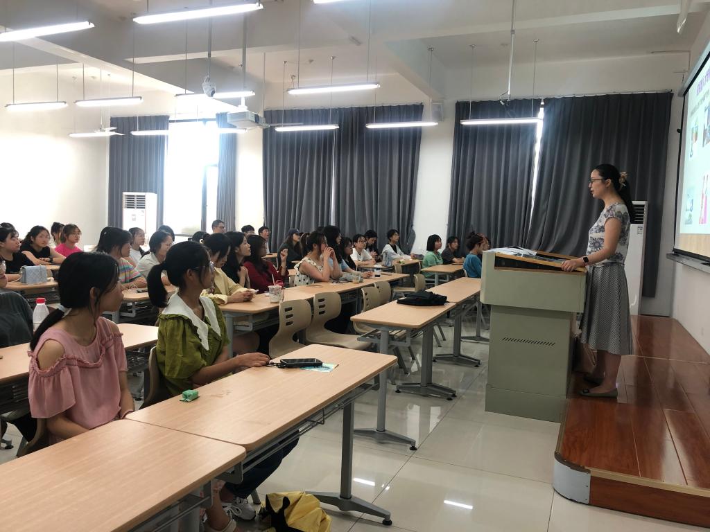 接着,刘韵超老师通过专业基础课、专业核心课、专业模块课、专业任选课、实训课程五个模块详细为同学们介绍了“日语专业课程设置与培养目标”。此外,还向同学们展示了日本文化演练、专业活动、国际合作、就业、推荐考取的资格证书、日语教室等。刘韵超老师还寄语新同学说,嘉里外院就是同学们梦想启航的地方,日语专业将助力同学们梦想成真。