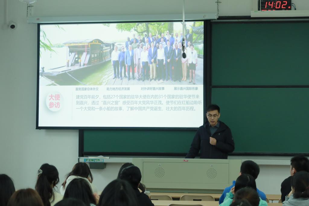4月24日下午,网上赌场 在兴德楼南楼121举办了主题为外事外交工作和外语专业学习的讲座。本次讲座邀请嘉兴市人民政府外事办公室工作人员何晨山担任主讲嘉宾,与同学们一起分享学习和工作经历,为同学们就业和职业规划进行指导。
