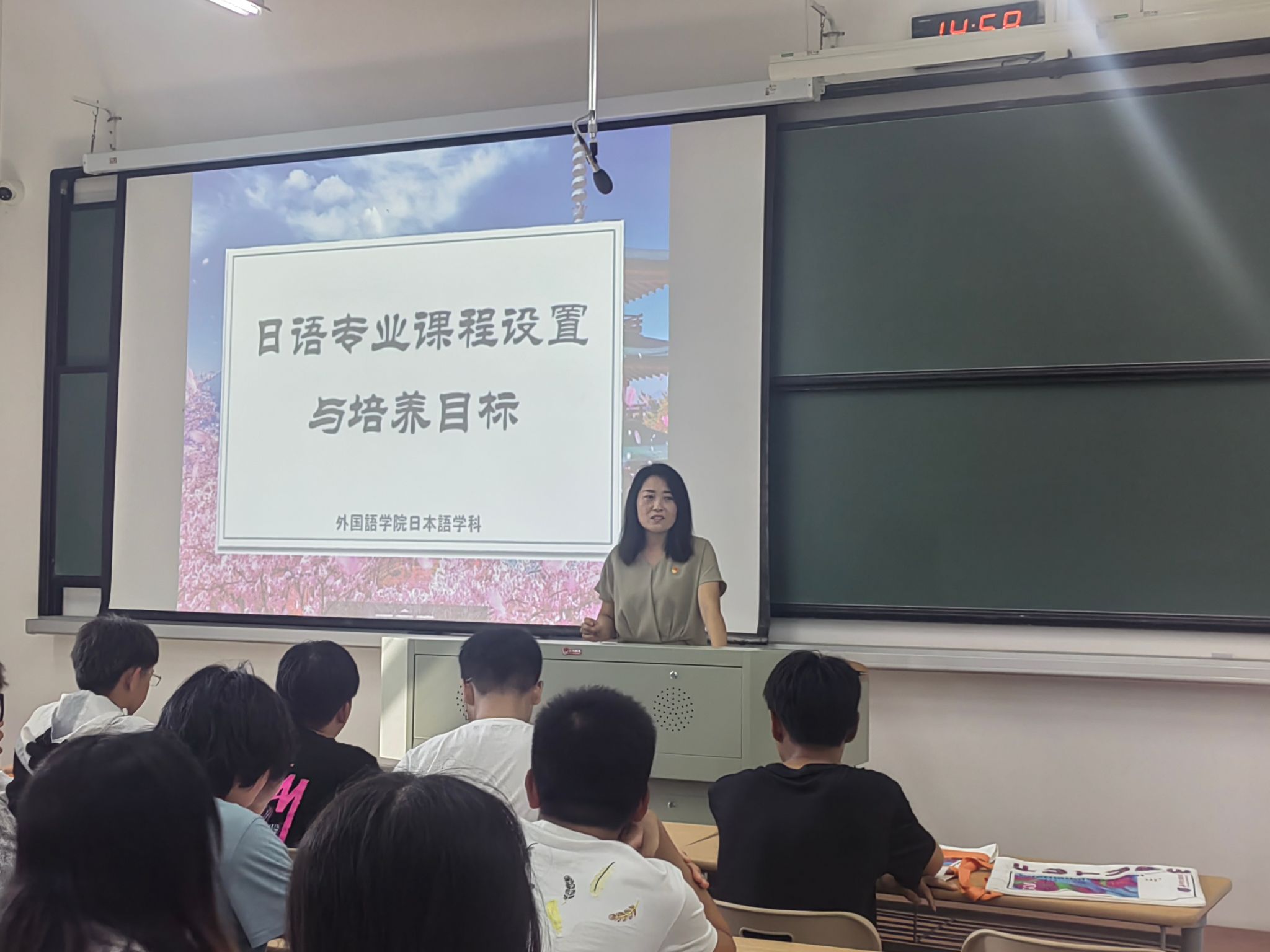 秋风拂桂树,香薰飘梁林。9月10号的教师节下午,日语系在兴德楼126教室举办了日语专业教师和2023级新生的见面会,见面会由日语系副主任张艳琴主持,专业负责人郭永恩、教研室主任王雪、韩语方向负责人朱京哲和对日商贸方向负责人董旭阳五位老师出席了见面会。