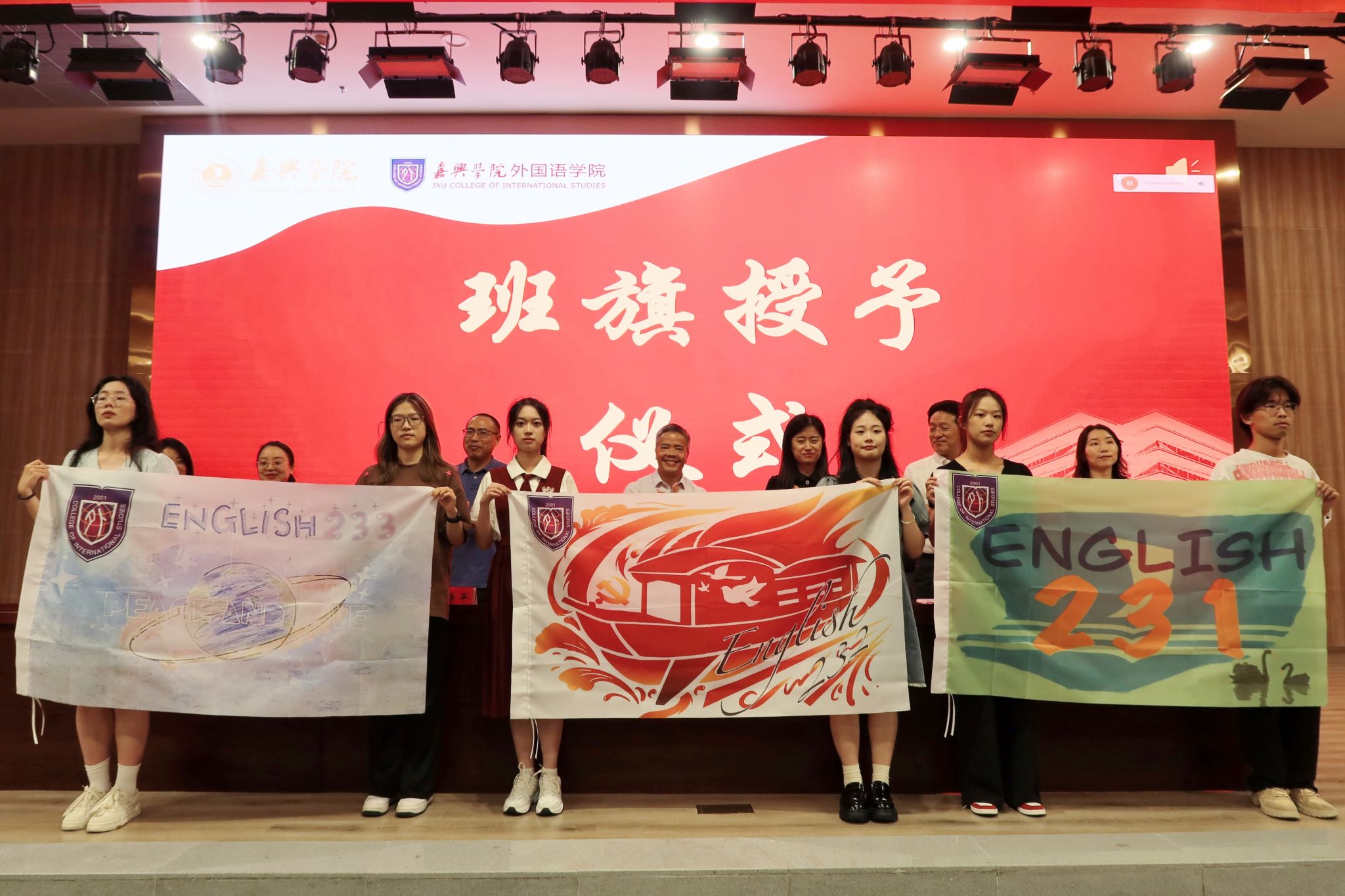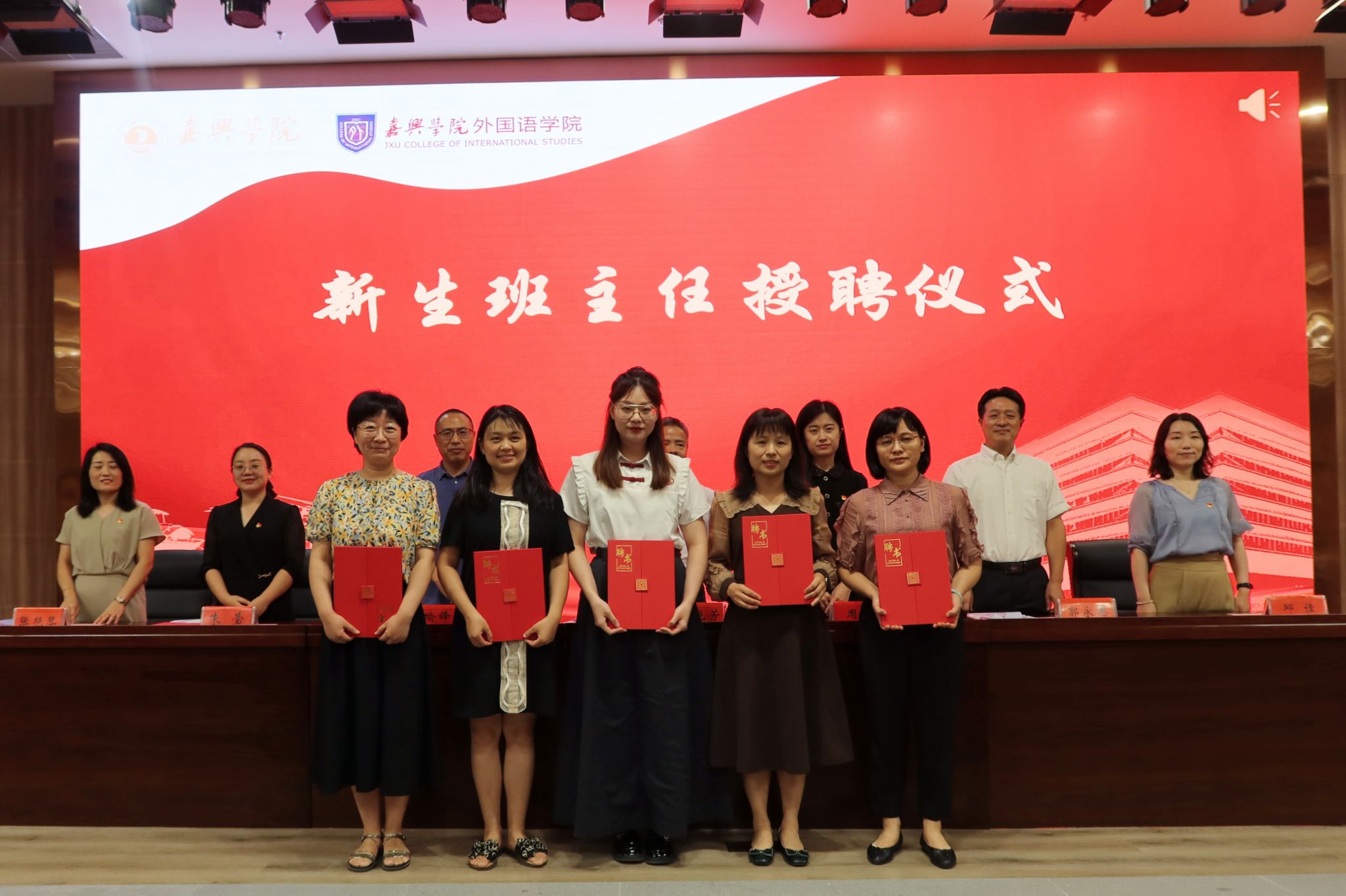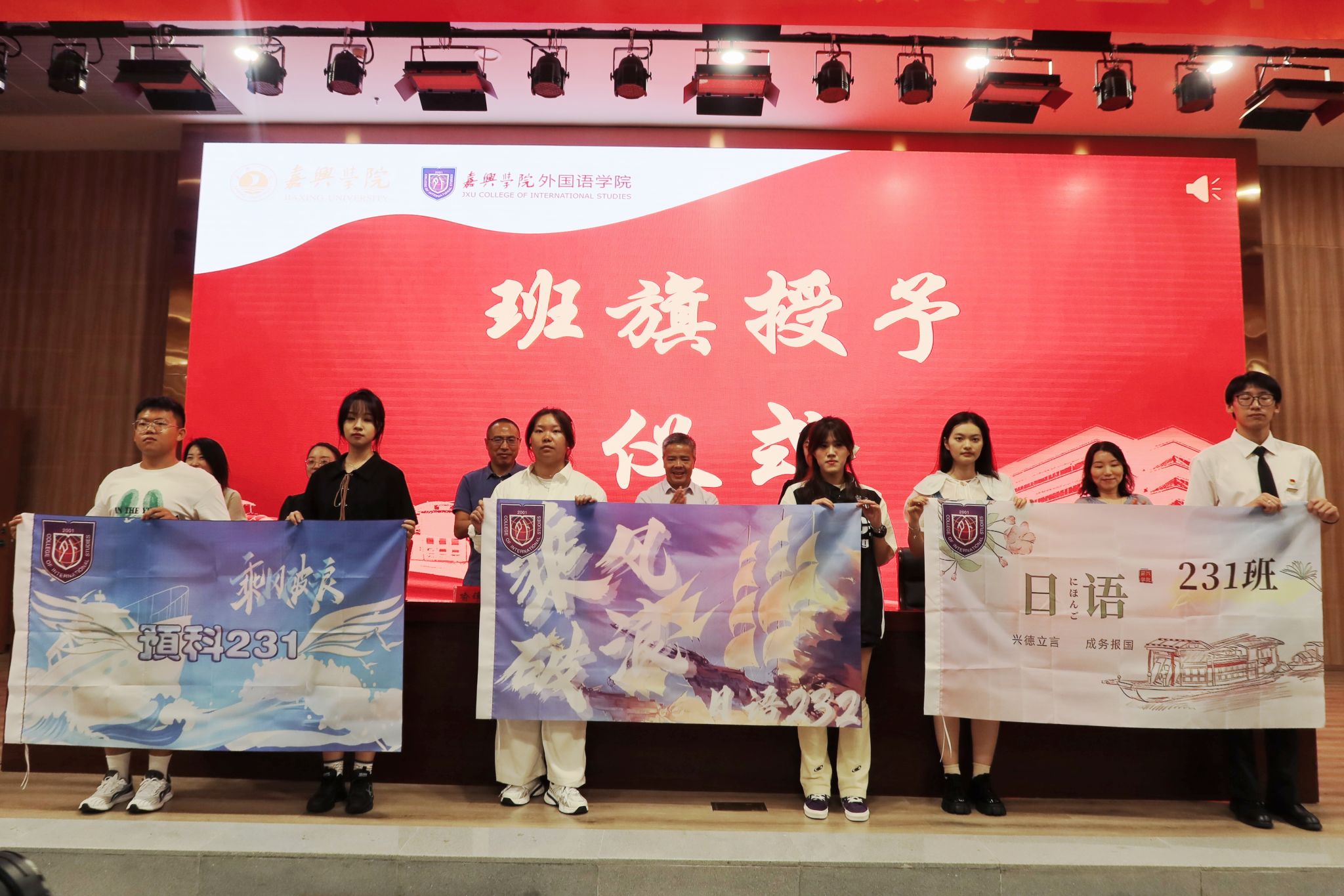 典礼现场,网上赌场党政 领导班子为新生班班主任颁发聘书并为新生班级授班旗。同学们向在场所有的老师们送上了节日祝福,师生共同观看了迎新节目。