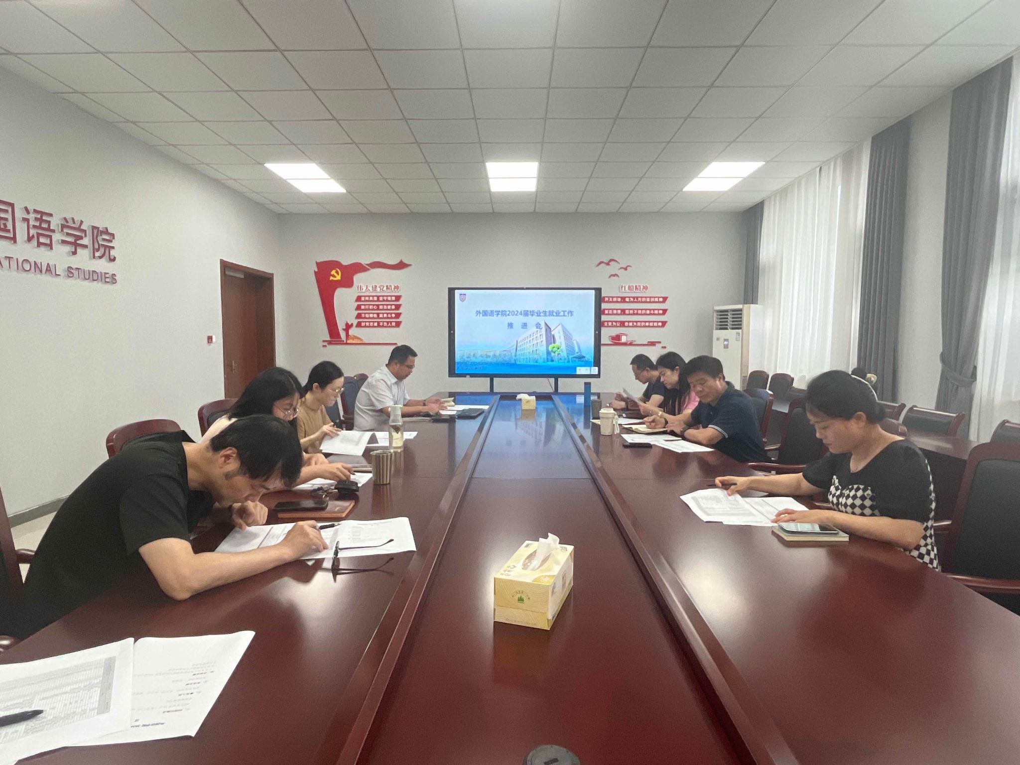 6月30日,网上赌场 在兴德楼南楼516召开2024届毕业生就业推进会。网上赌场党政 领导、系主任、2024届班主任、辅导员参加会议。党委副书记张啸峰主持会议。