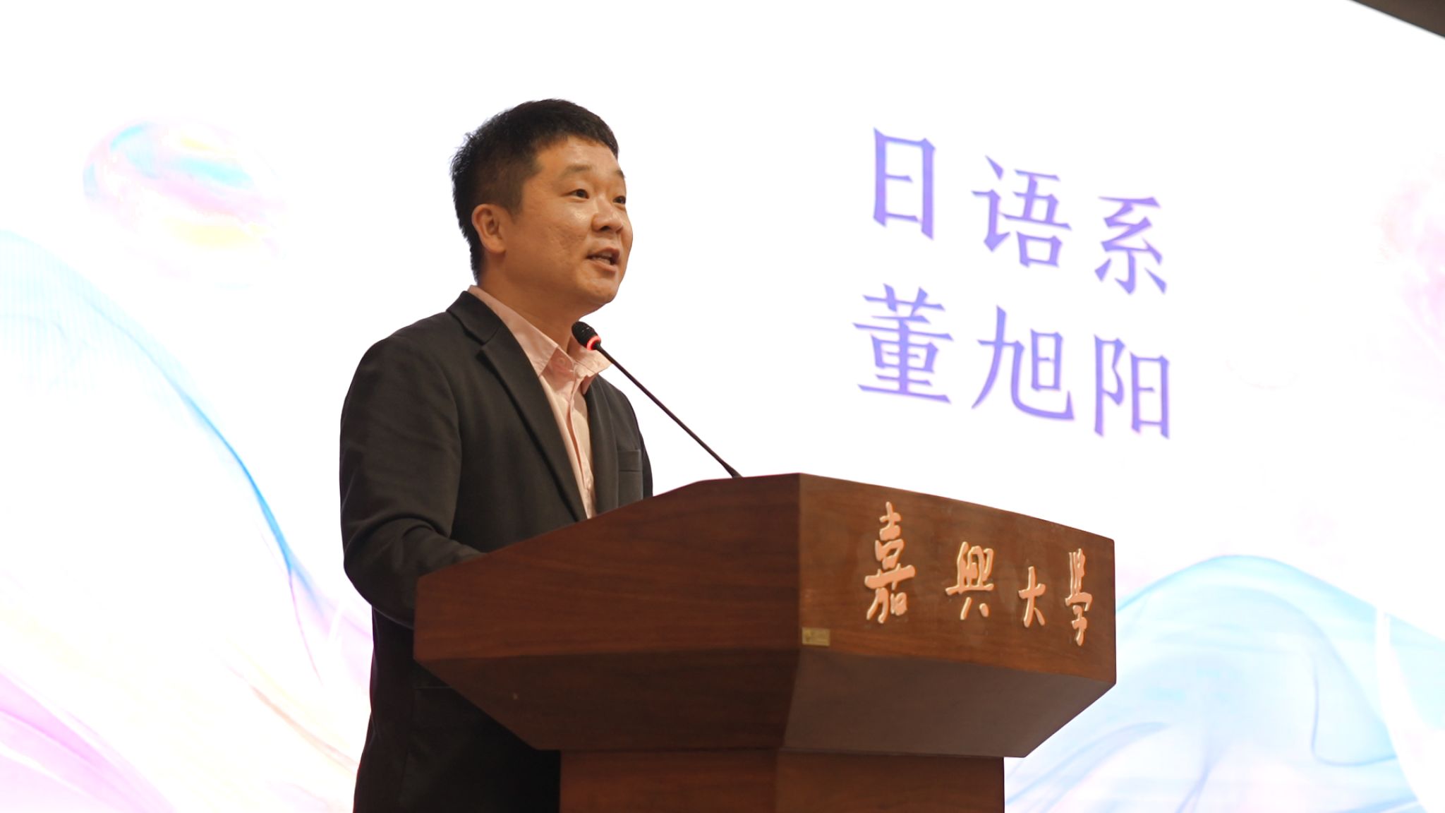 教师代表英语系侯飞老师和日语系董旭阳老师也以师长和朋友的身份,向即将踏上新征程的毕业生们表达了由衷的祝贺与殷切的期望。侯飞以“有一天”为题,深情回顾与毕业生们共同度过的青春记忆,鼓励大家在未来的道路上保持求知若渴的心态、勇敢面对挑战,常怀感恩之心;董旭阳结合自身经验,分享实用心态调整指南,为毕业生们照亮未来前行的道路,助力他们以自信从容的姿态迈向人生新征程。