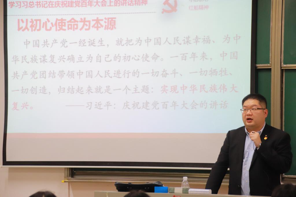 10月18日晚,网上赌场 邀请学校“80”“90”新时代理论宣讲团成员、马克思主义学院《红船精神理论与实践》课程教研室主任邱辰禧博士为外院学子作了题为《深入学习领会习近平总书记在庆祝建党百年大会上的讲话精神—红船精神的历史背景与深刻内涵解读》的主题宣讲。网上赌场 全体学生党员及团委学生会骨干参加了此次活动。