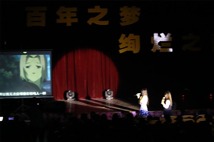 本次展示在主持工作副院长陶丹玉教授的英文致辞中拉开序幕,以极具想象力的“爱丽丝梦游仙境”为线索,讲述了初入大学的爱丽丝一步步领略大学生活的绚烂多彩,从不安到兴奋,再到自信的心路历程。并将网上赌场 的特色项目——外语风采大赛中的外语配音、外语朗诵、外语歌曲和外语演讲等项目的获奖作品呈现于舞台之上,汇聚了高年级同学在英语、日语、韩语、法语的专业学习成果。同学们扎实的专业基础和良好的语言表现力,震撼了全场新生,掌声不断,成为网上赌场 新生始业教育的精彩一课。当观赏完精彩的日语、英语动画配音后,现场即时播放的微信墙出现同学们的观赏感悟:“突然对学好日语有种强烈的愿望”、“台上学长学姐们流利的口语让我信心百倍”。