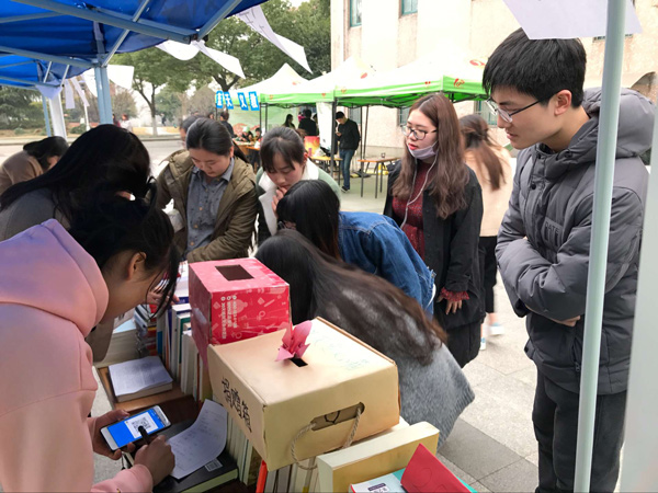 团委学生会于3月4日在越秀校区美食广场和梁林校区活动中心前举行了志愿活动展示、现场志愿服务和图书义卖活动。