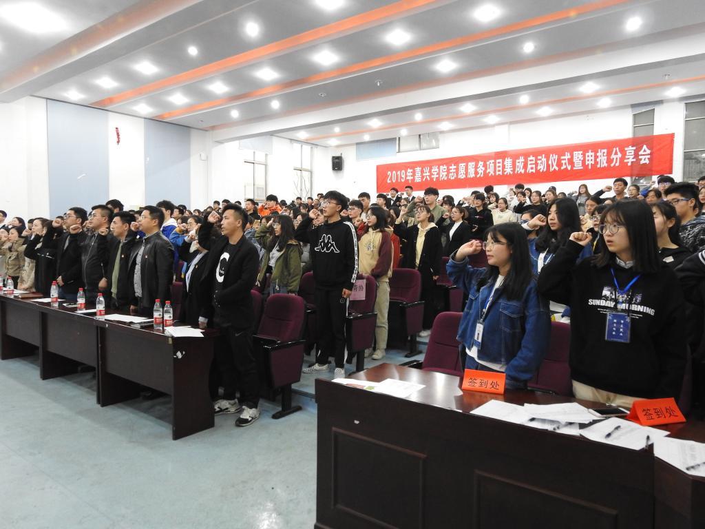 会议首先由校青协领读《嘉兴学院志愿服务项目集成倡议书》,然后是商学院团委和网上赌场 团委进行经验分享。商学院“导医导诊” 志愿服务集成项目和网上赌场 的“未来曙光”关爱特殊儿童群体志愿者服务集成项目是2018年首次获批的校第一批志愿服务集成项目。分享会上,商学院团委和网上赌场 团委分别对项目集成过程、活动开展等方面的经验进行介绍,令参会代表们获益匪浅。其次是第二批志愿者服务集成项目进行申报,申报项目共有七项,分别是医学院的“青春守护者”和“爱在嘉兴,杏林送暖”、南湖学院的 “衔枝筑巢”、师范学院的“童心缘”、文法学院的“书香使者”及网上赌场 的 “梧桐树”服务集成项目。最后,大会在全体宣读志愿誓词声中圆满落下帷幕。