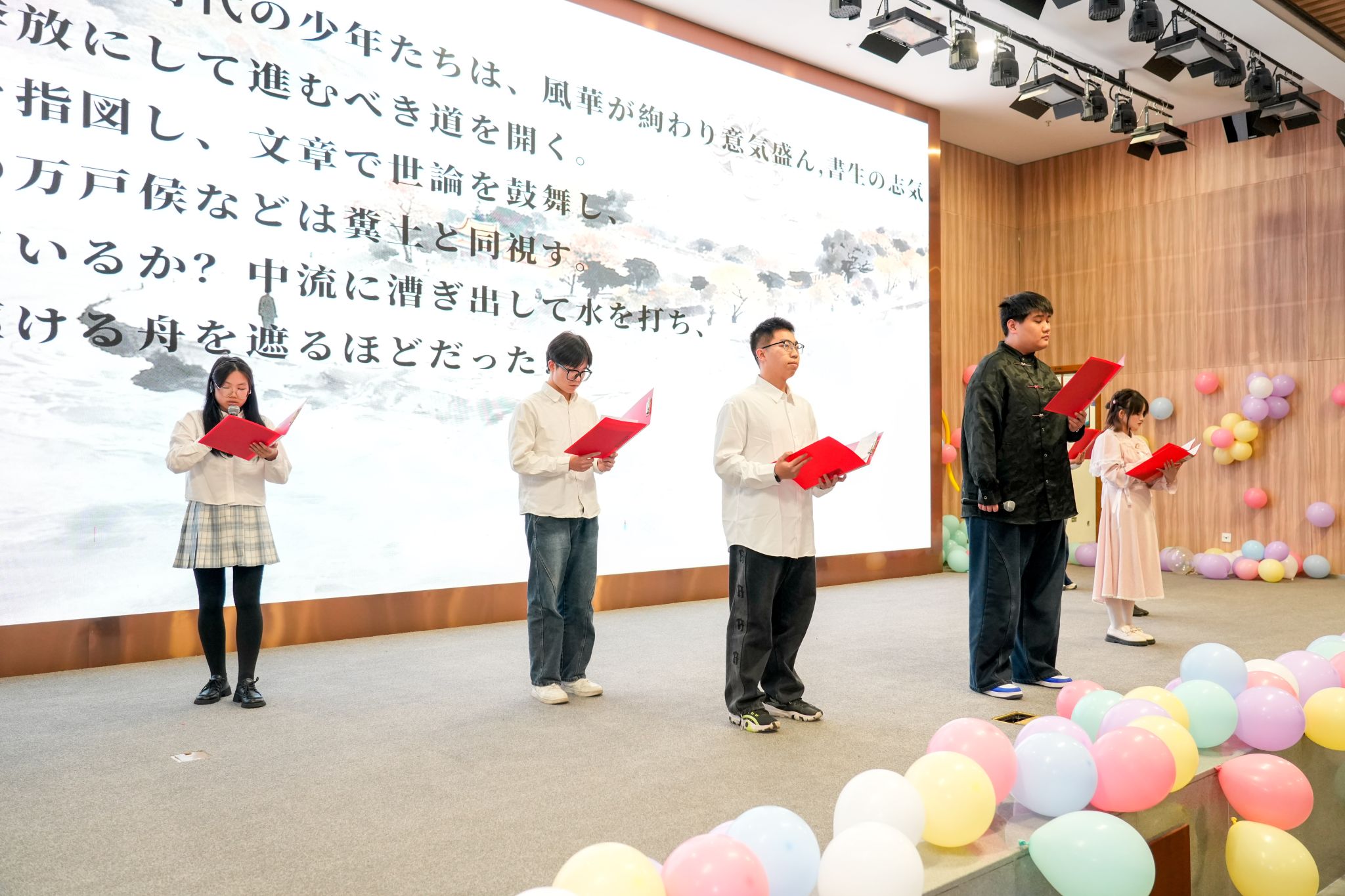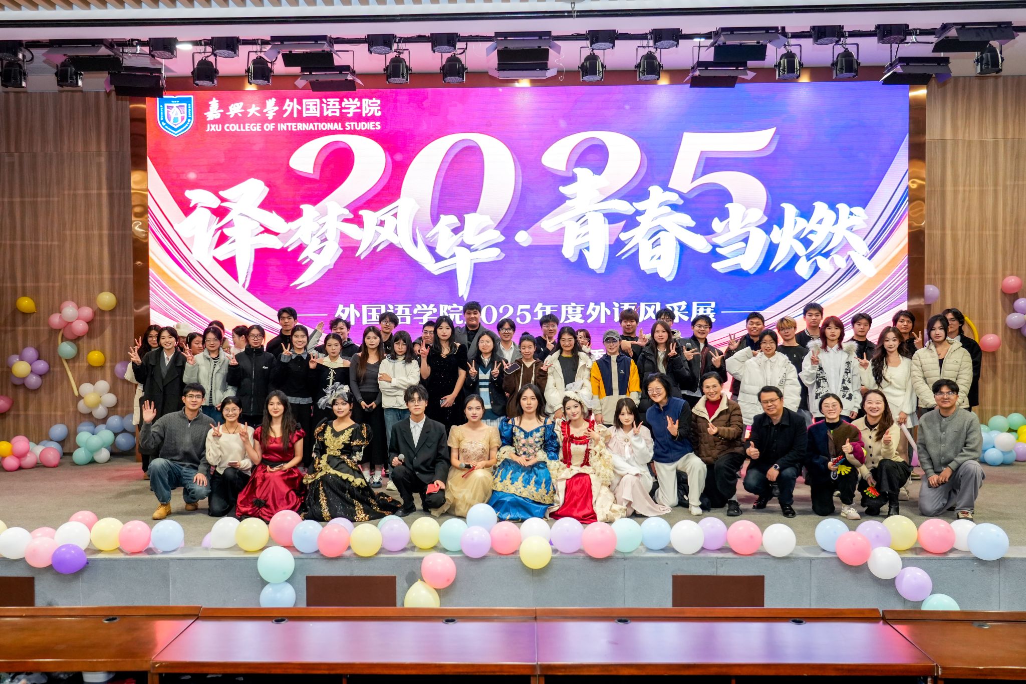 12月21日晚,网上赌场 一年一度的特色活动“外语风采展”在图书馆报告厅举行。今年活动以“译梦风华·青春当‘燃’”为主题,学院分管学生工作负责人、近300名师生齐聚一堂,共同见证了一场融语言艺术、文化展示与青春创意于一体的视听盛宴。