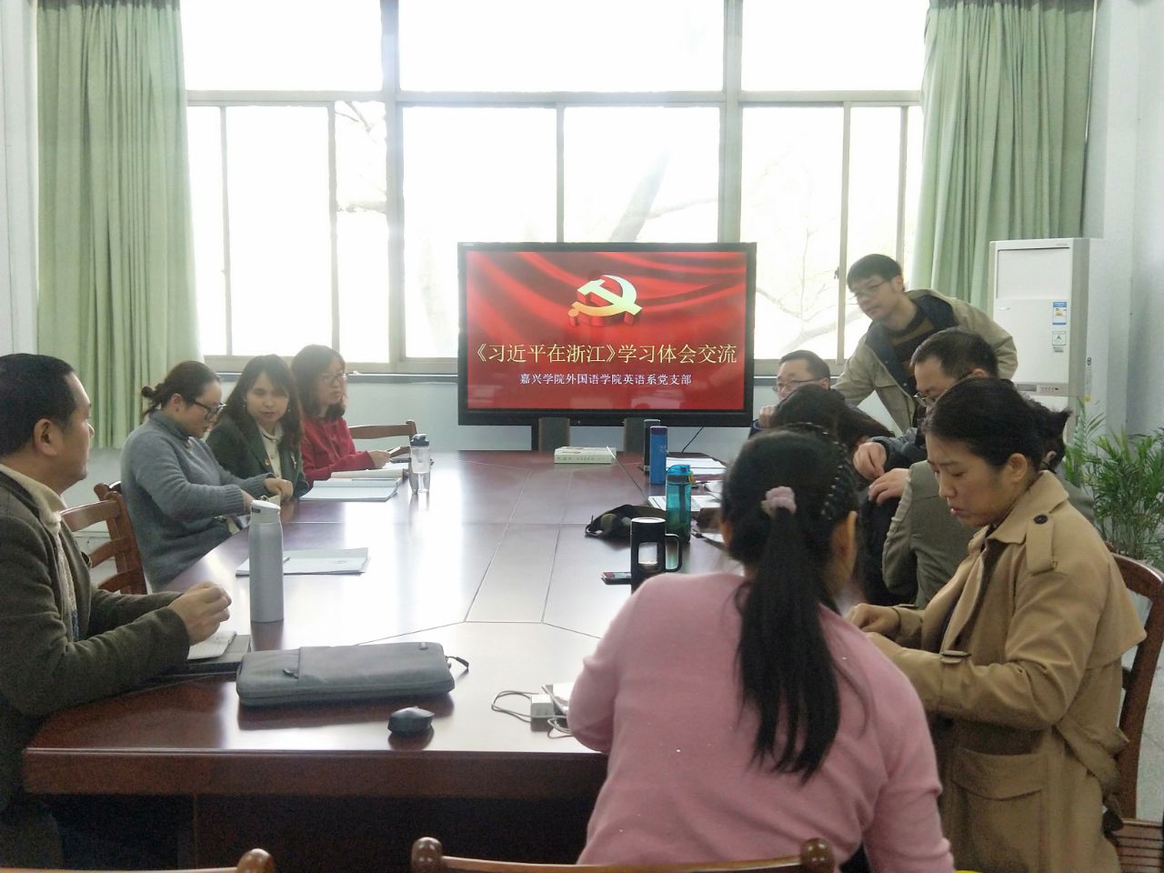 近日,网上赌场 各党支部开展以学习《习近平在浙江》采访实录为主题的主题党日活动。英语系、日语系和大外党支部在支部书记的带领下,集中学习了《习近平在浙江》采访实录以及《习近平在浙江》的五把“金钥匙”。全体教师党员和民主党派代表参加学习会,畅谈和交流了学习体会。
