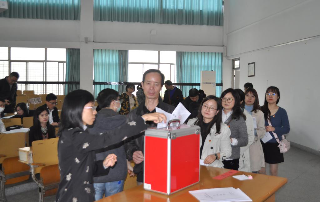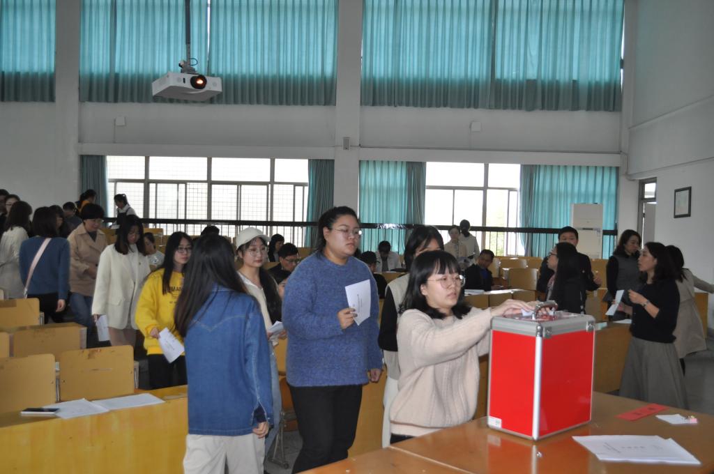 11月5日中午,网上赌场 党委在外语楼204会议室召开党员大会,选举产生出席中共嘉兴学院第四届党代会的代表。会议由学院党委书记陶丹玉主持,正式党员62人参加会议。