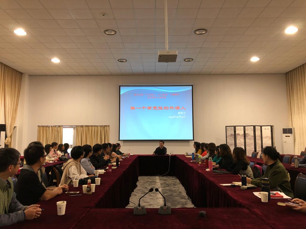 为扎实推进“不忘初心、牢记使命”主题教育活动,进一步贯彻落实“守初心、担使命、找差距、抓落实”的总要求,10月31日下午在学校第六会议室,网上赌场 院长唐艳芳结合前期学习教育和调研情况,为全院师生党员上了一堂题为“做一个有党性的外语人”的专题党课。全院师生党员到场聆听党课。