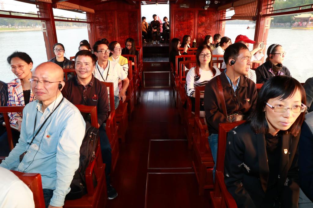 在南湖革命纪念馆东码头,党员们排队踏上仿古画舫,绕湖心岛行驶一周,从湖面上瞻仰南湖红船,体验一大代表们的建党之路。一边观赏着风光秀丽的秋日南湖景色,一边听讲解员生动详细地介绍嘉兴的风土民情、自然地理、历史人文等情况,小小红船承载千钧,播下了中国革命的火种,党员们都表示通过参加“六个一”主题教育活动,对革命历史有了更深了解,更加坚定了理想信念,坚定了永远跟党走的前进方向,坚定了投身教育事业的光荣使命感。