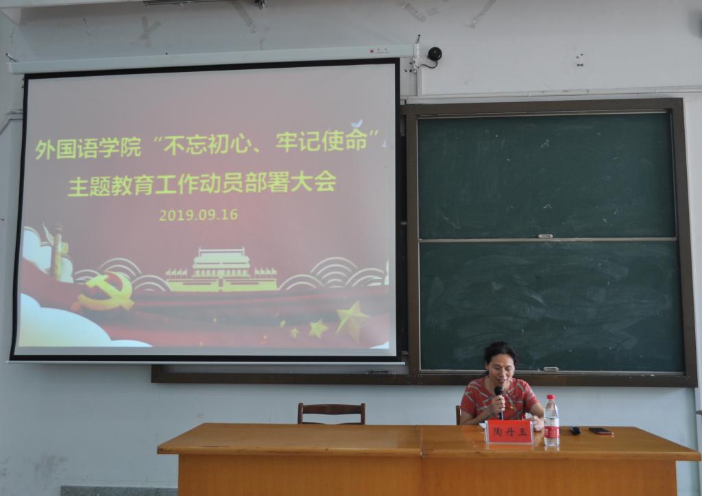 9月16日中午,网上赌场 在外语楼310召开“不忘初心、牢记使命”主题教育工作动员部署大会,深入贯彻落实中央和上级党委主题教育相关会议精神,特别是习近平总书记和省委、市委、学校党委领导的重要讲话精神,对学院开展主题教育进行全面动员部署。校党委组织部副部长、嘉兴学院“不忘初心 牢记使命”主题教育领导小组材料组组长张向阳参加了会议。院党委副书记、院长唐艳芳主持,院党委书记陶丹玉做动员讲话。