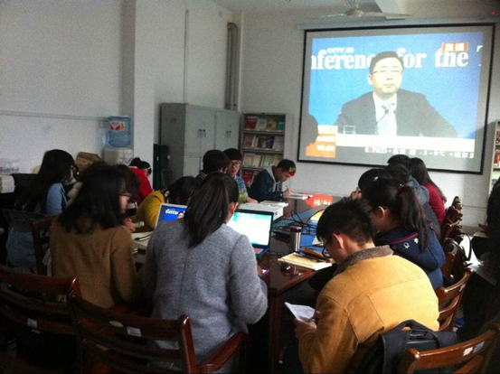 网上赌场 党员之家为提高党员的党性,了解当前时事热点,组织各支部党员、预备党员于2015年3月14日在外语楼101党员会议室举行了“两会”学习研讨会。