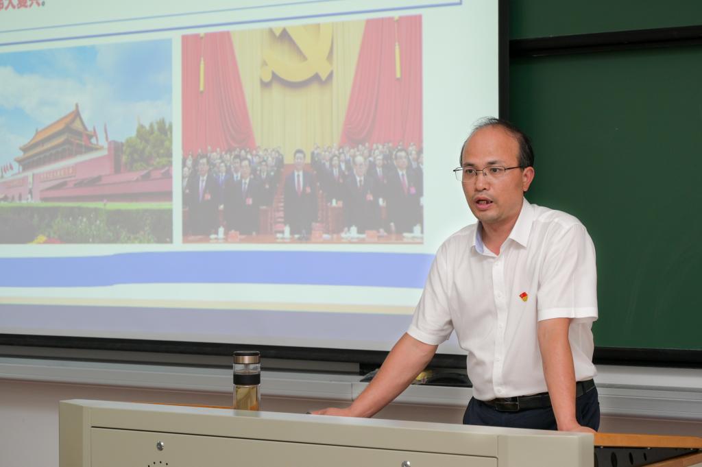 杨培强副校长从实现第一个百年奋斗目标全面建成小康社会、中国共产党创造的四个伟大成就、继承伟大的建党精神,以史为鉴开创未来的九个方面要求、全面贯彻“一国两制”方针和坚持“九二共识”以及全体党员要继续为实现人民对美好生活的向往不懈努力等六大方面,对习近平总书记在庆祝中国共产党成立100周年大会上的重要讲话精神的丰富内涵进行深入阐述,运用大量详实的历史资料介绍了中国共产党从诞生到进入中国特色社会主义新时代的奋斗历程,并且从科学判断是制定政策的前提、认清国情是制定政策的基础、坚持解放思想、勇于理论创新和正确处理改革、发展和稳定的关系四个方面全面总结了党的基本建设经验。