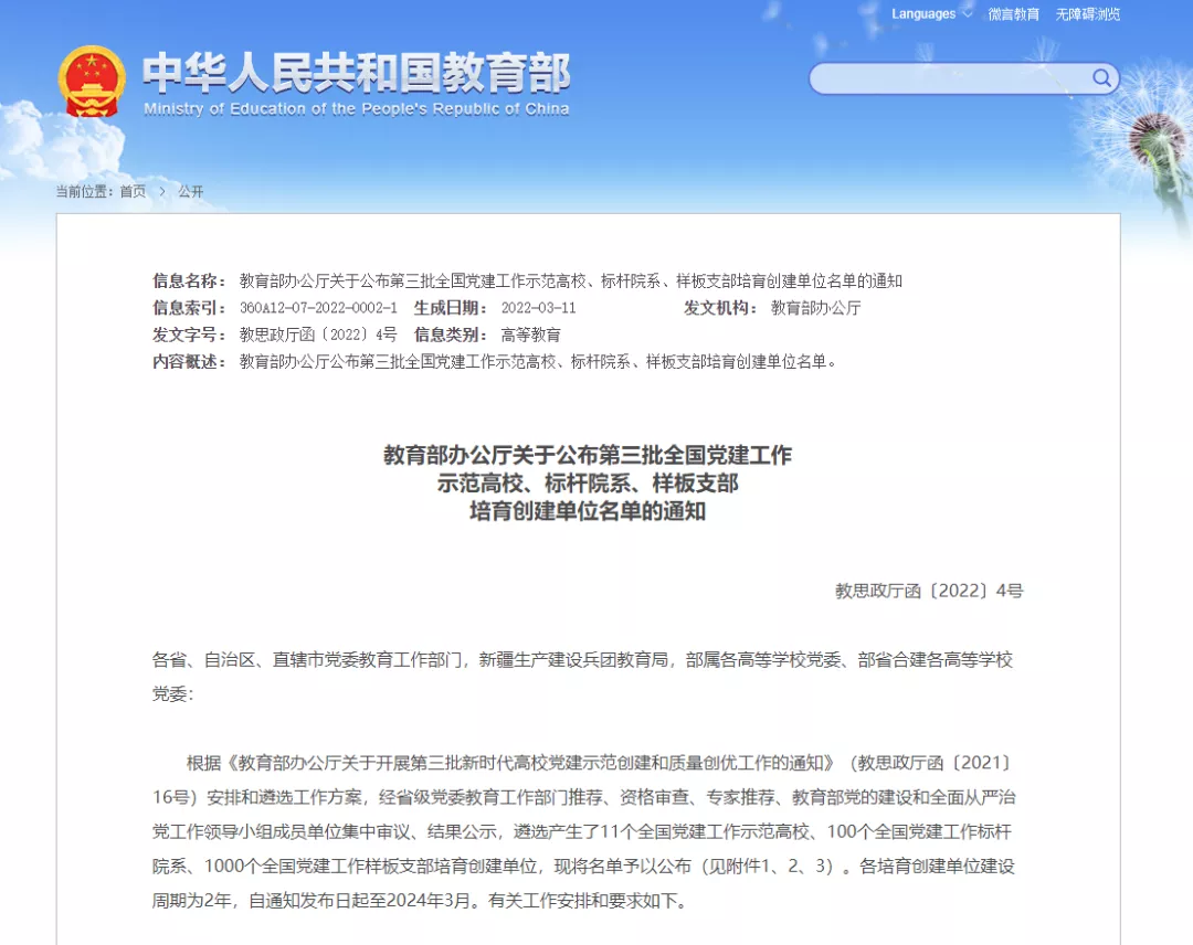 近日,教育部办公厅发文公布了第三批全国党建工作示范高校、标杆院系、样板支部培育创建单位名单。经省级党委教育工作部门推荐、资格审查、专家推荐、教育部党的建设和全面从严治党工作领导小组成员单位集中审议、结果公示,遴选产生了11个全国党建工作示范高校、100个全国党建工作标杆院系、1000个全国党建工作样板支部培育创建单位。网上赌场 第二党支部入选第三批“全国党建工作样板支部”培育创建单位。