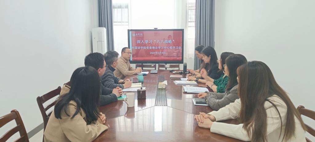 5月8日,网上赌场 党委理论学习中心组举行“学习贯彻习近平新时代中国特色社会主义思想、忠实践行‘八八战略’”专题学习会。学院党委书记周钰和副院长喻锋平分别作主题发言,全体中层领导干部及党委委员参加学习会。