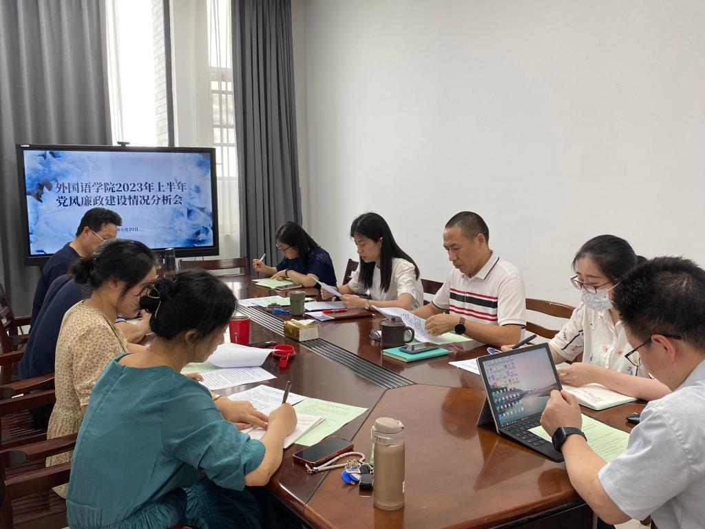 6月29日下午,网上赌场 在兴德楼南楼516会议室召开了2023年上半年党风廉政建设情况分析会。根据要求,会议围绕主题教育调研、师德师风专项整治、巡察问题整改等方面存在的问题进行分析,并就存在的问题提出整改举措。会议由学院党委书记周钰主持,网上赌场党政 班子成员、党委委员、特约监察员、科研秘书等参加会议。