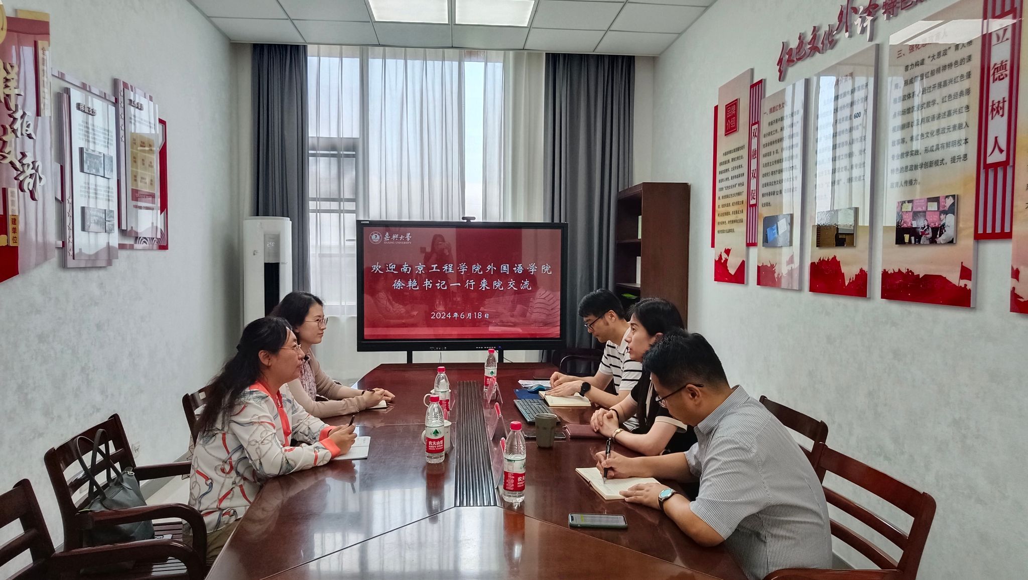 6月18日下午,南京工程学院网上赌场 党总支书记徐艳、支部书记何慧文一行来学院交流党建工作。网上赌场 党委书记周钰、党委副书记张啸峰以及第二党支部委员鲁俊丰参加交流会。