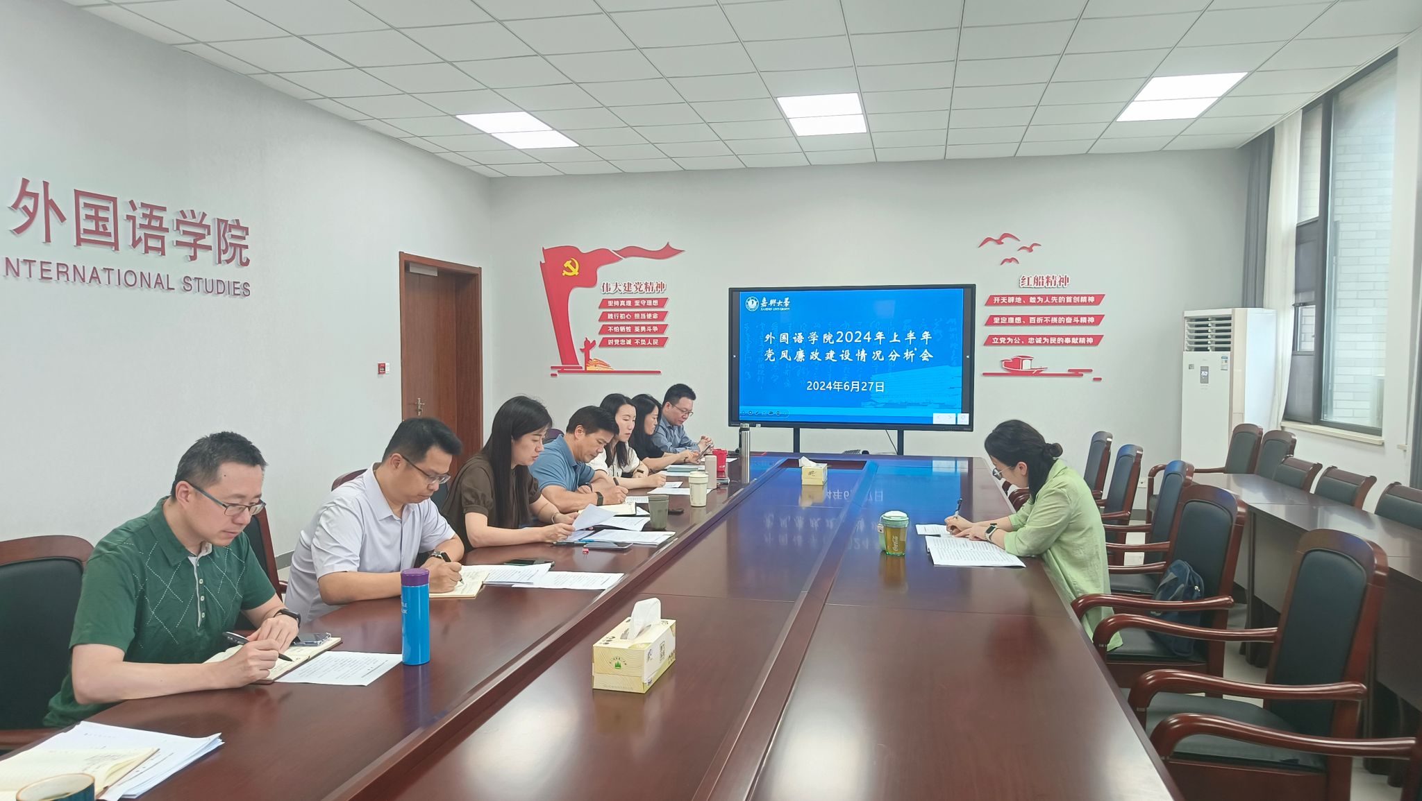 6月27日下午,网上赌场 在兴德楼南楼516会议室召开2024年上半年党风廉政建设情况分析会。会议由学院党委书记周钰主持,纪检监察室(巡察办)副主任杨碧瑜到会指导,网上赌场党政 领导班子成员、党委委员等参加会议。