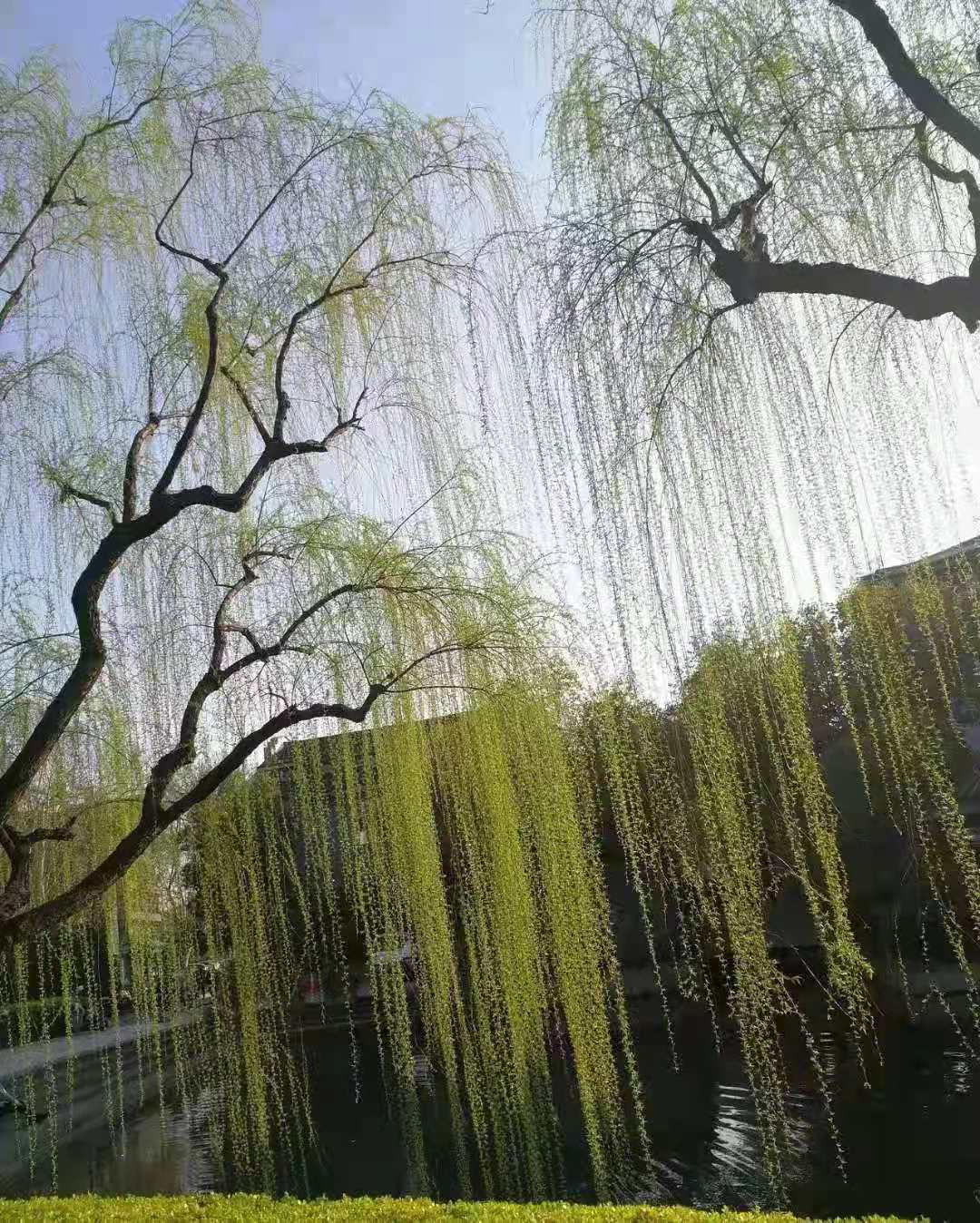 图片36:碧波翠柳迎春日,琼楼苍穹遮春阳。