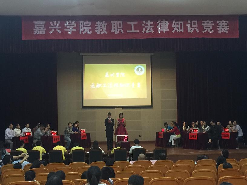 2015年10月15日晚六点三十分,嘉兴学院教职工法律知识竞赛在越秀校区教二报告厅拉开帷幕。来自各二级学院、独立学院和直属单位等共计16支代表队,参加了本次比赛。网上赌场 代表队由畅宝仁、吴嫣斐、步振道三位老师作为参赛选手上场答题,院党委书记施敏颖老师担任领队,另有候补队员参加。