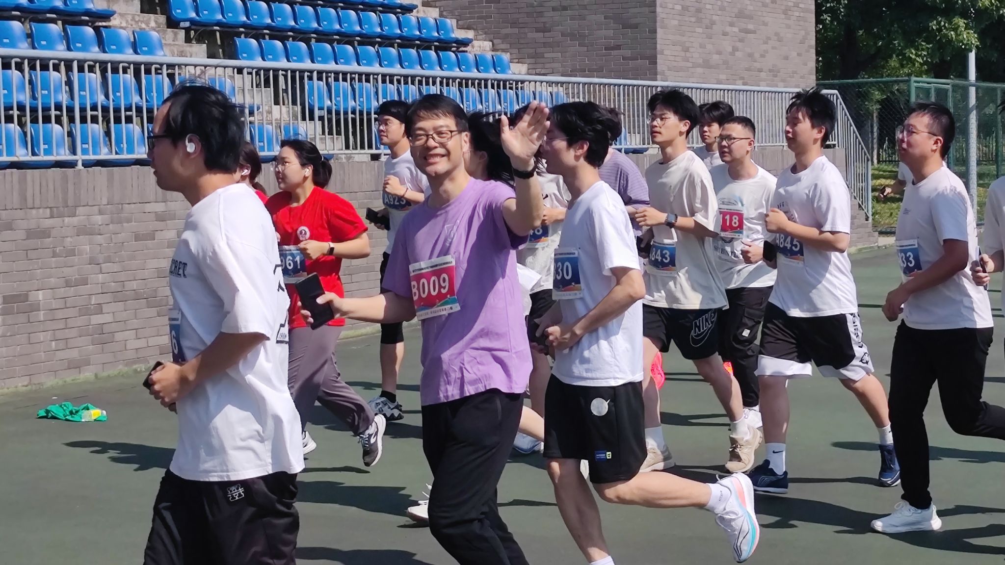 5月18日上午8点半,在领队唐艳芳院长的带领下,网上赌场 教师代表队和学生代表队早早来到田径场为马拉松做准备。随着一声令下,师生们如同钱塘江潮水般冲出了起跑线。烈日炎炎,丝毫没有影响师生的热情,久违的酣畅淋漓让校园充满了活力;赛程漫漫,师生们依旧面带微笑、勇往直前。