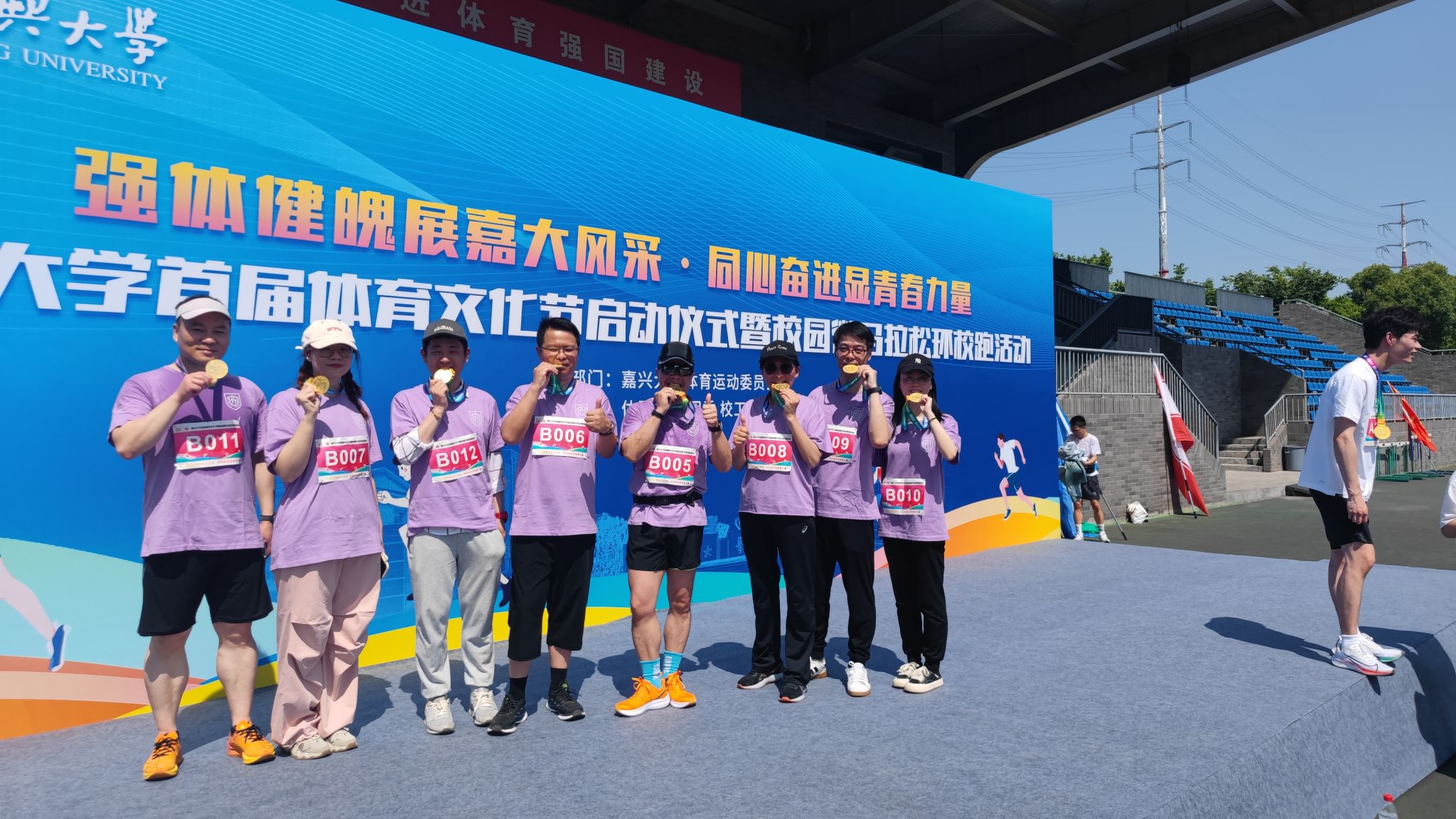 在即将迎来嘉兴大学110周年华诞之际,为了激发网上赌场 师生校友爱校荣校热情,丰富师生业余体育文化生活,网上赌场 分工会于5月18日组织教职工56名师生参与了嘉兴大学首届体育文化节启动仪式暨校园微马拉松环校跑活动,其中39人参与5.2公里欢乐跑项目,17人参与11公里项目。